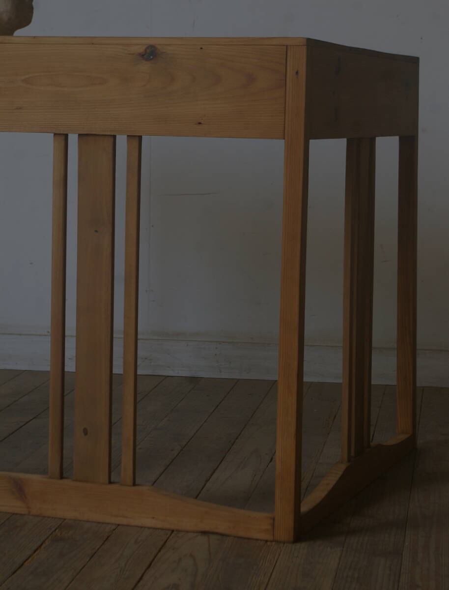 珍しいデザインで造りも良く、3杯の引き出しと古い無垢材の綺麗な木目がとても雰囲気の良いアンティークカウンターテーブルです。