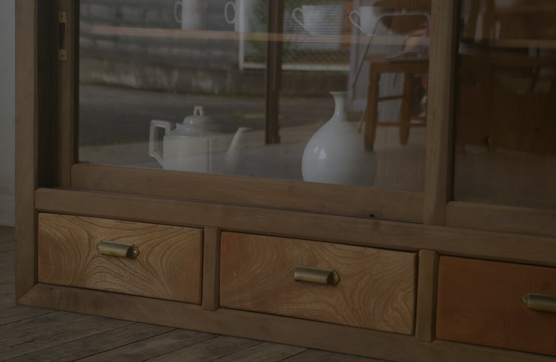 店舗やギャラリーでの什器としてやご自宅でのコレクションケースや食器棚、本棚やサイドボードなどに。