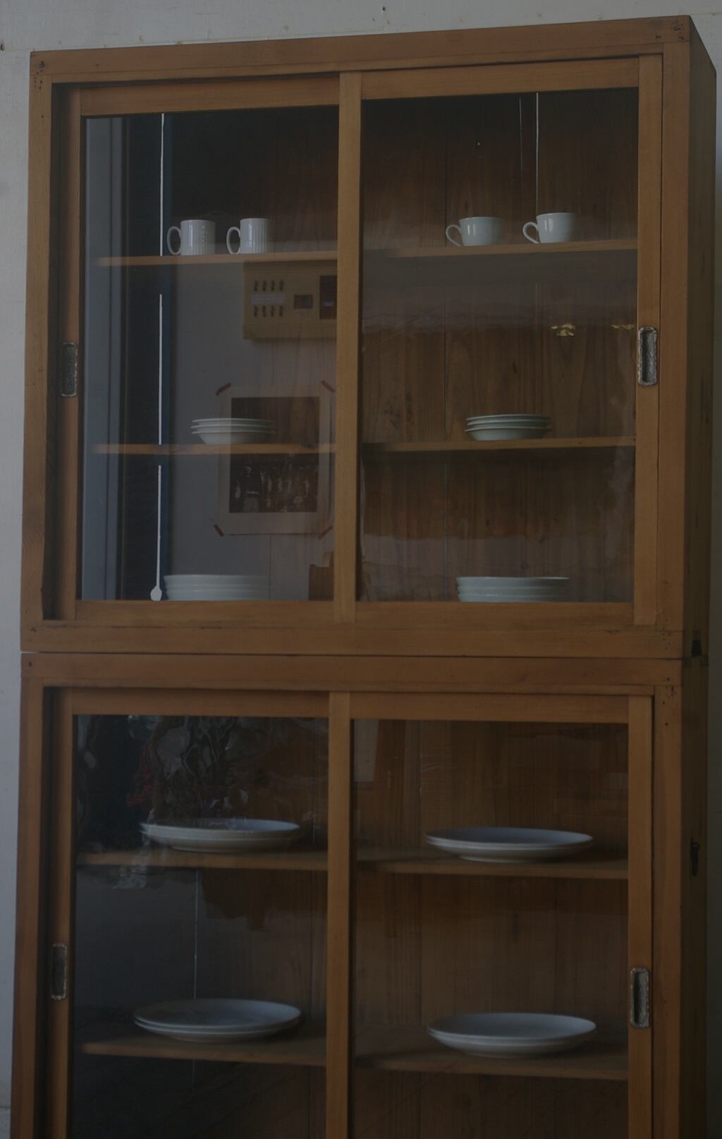 古い重ねガラス戸棚◆食器棚 YZ2243