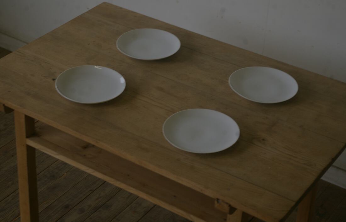 シンプルなグッドデザインでサイズ感も良く、古い無垢材の綺麗な木目がとても雰囲気の良いアンティークテーブルです。