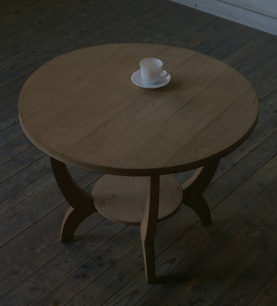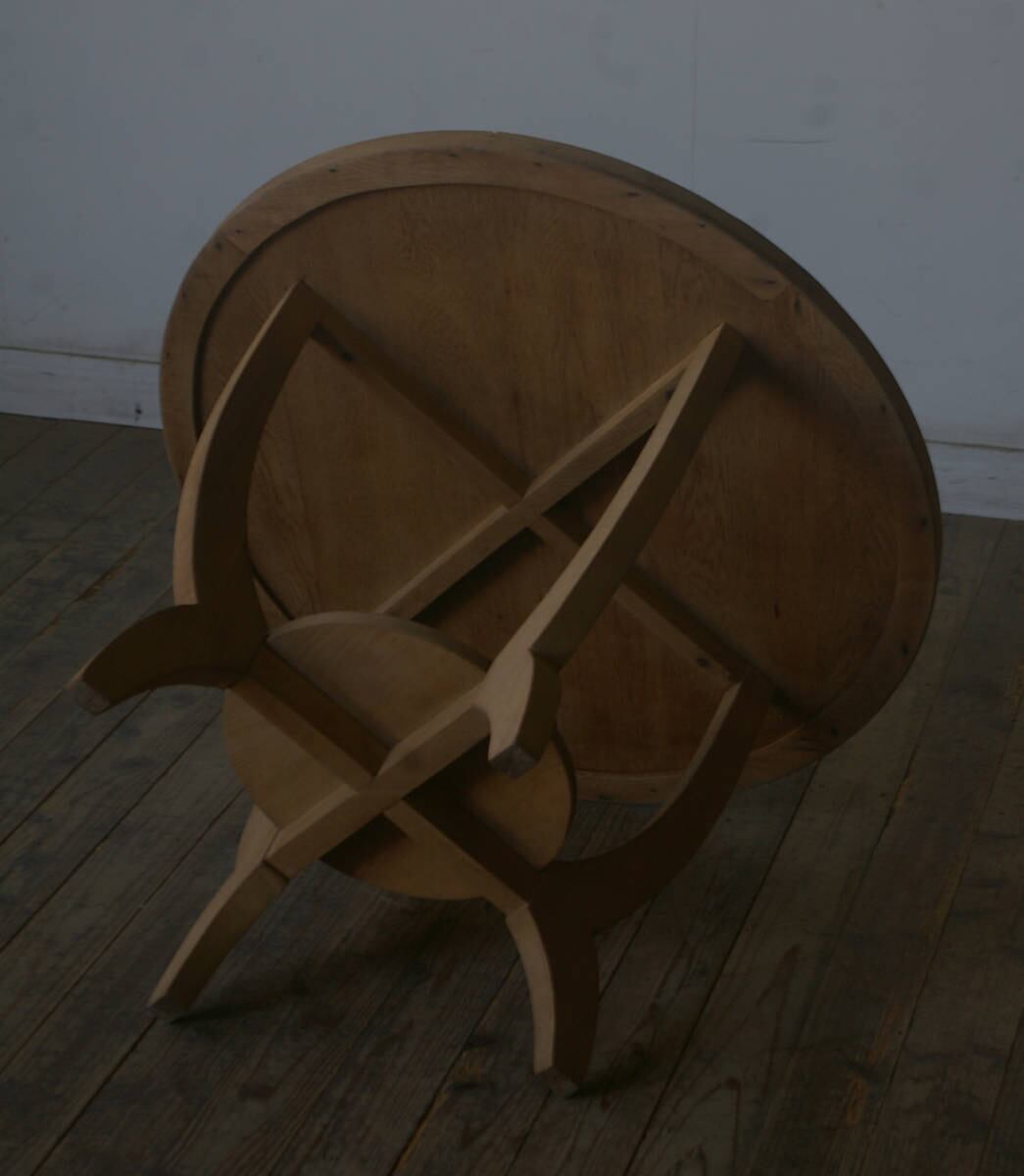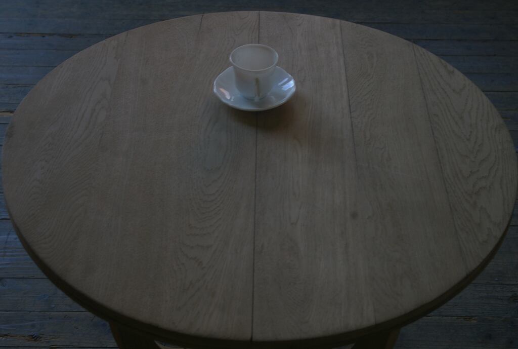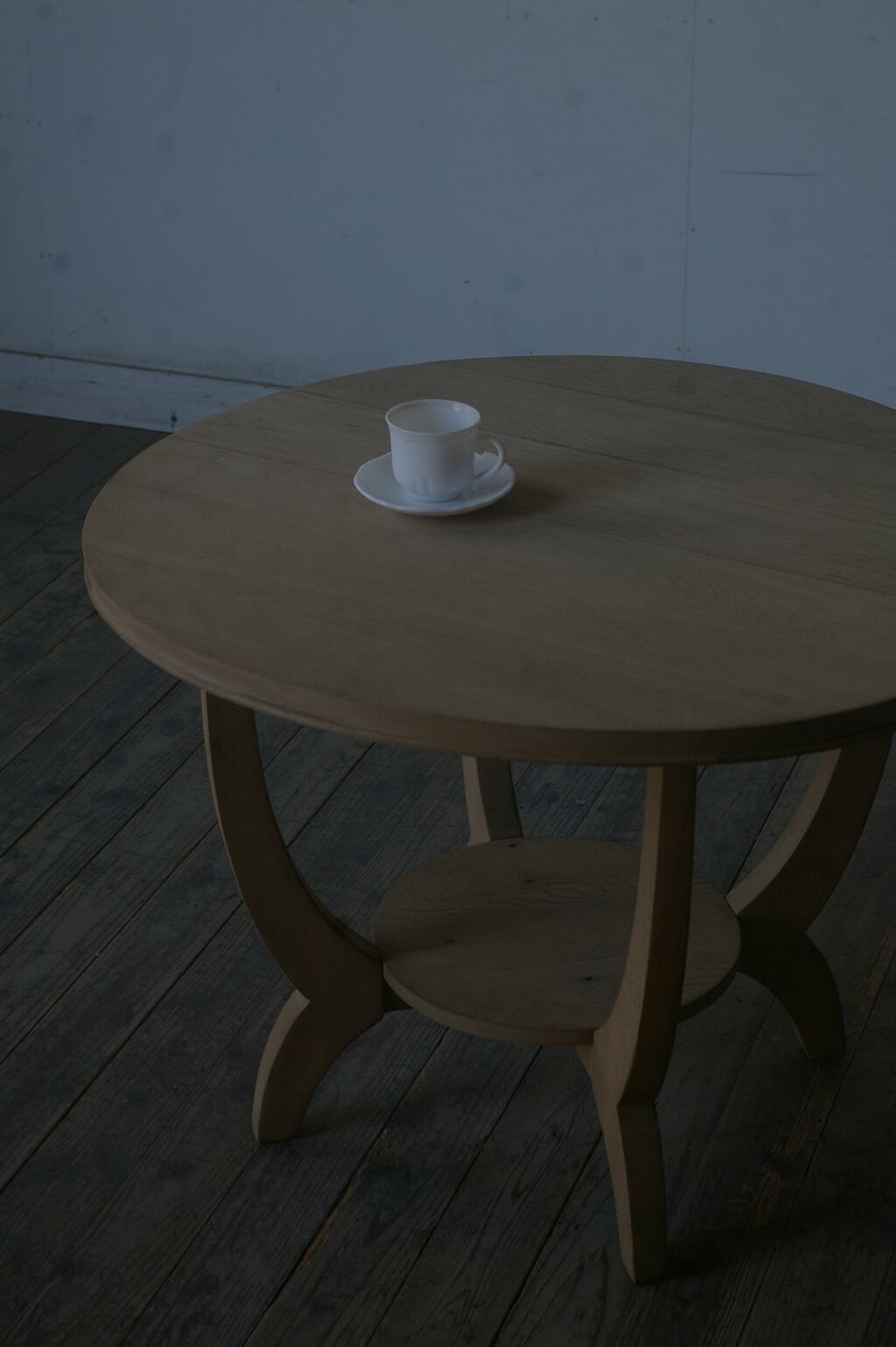 古い楢材の綺麗な木目がとても雰囲気の良いアンティークサークルテーブルです
