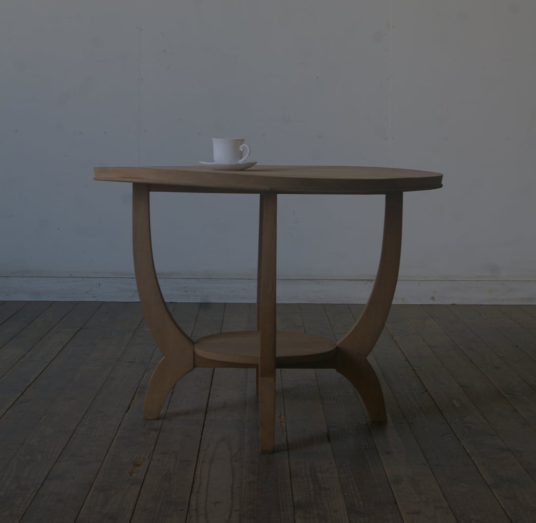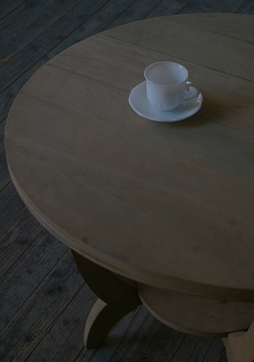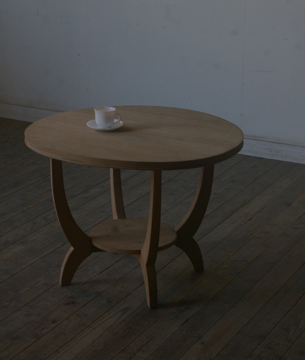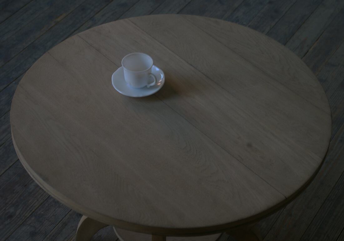 古い楢材の綺麗な木目がとても雰囲気の良いアンティークサークルテーブルです