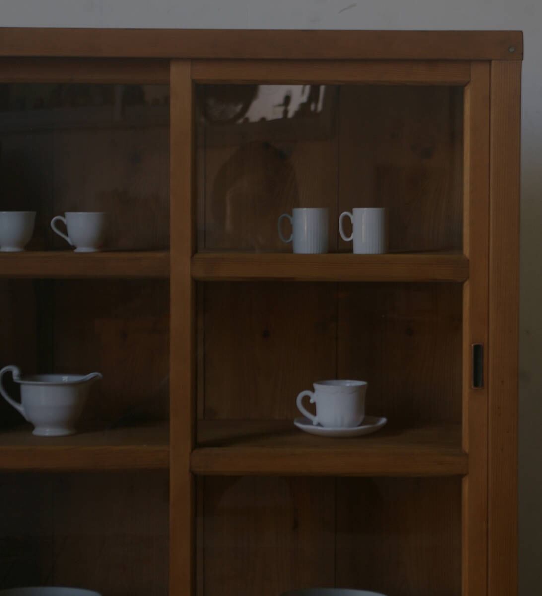 引き出し2杯◆古いガラス戸棚◆食器棚 YZ2254