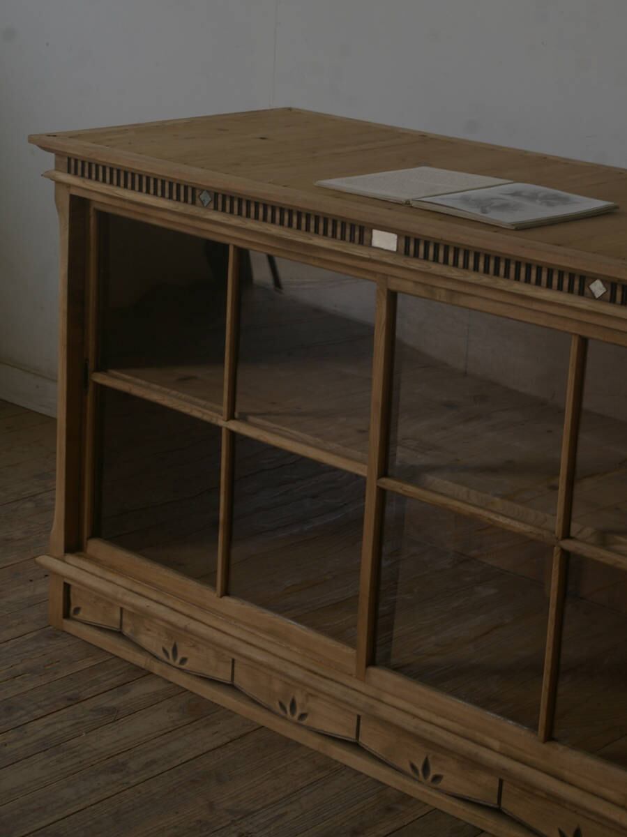 希少 古手◆造りの良いおおきなカウンター 十字ガラス戸棚 YZ2270