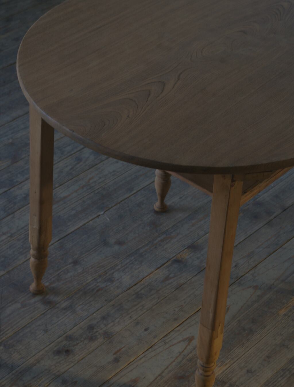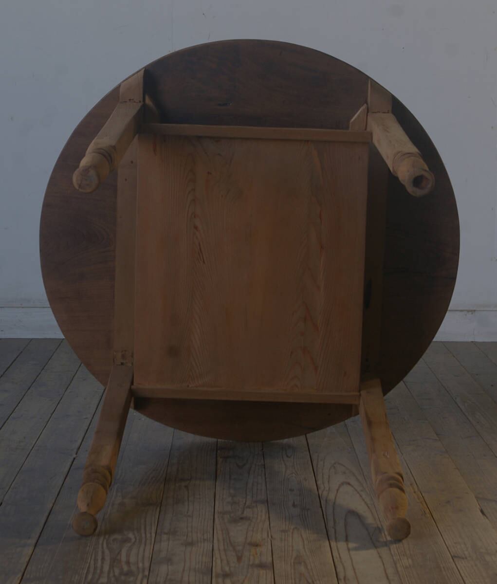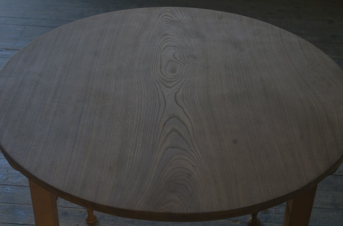 立派な造りでデザイン、サイズ感も良く、古い無垢材の綺麗な木目がとても雰囲気の良いアンティークサークルテーブルです。