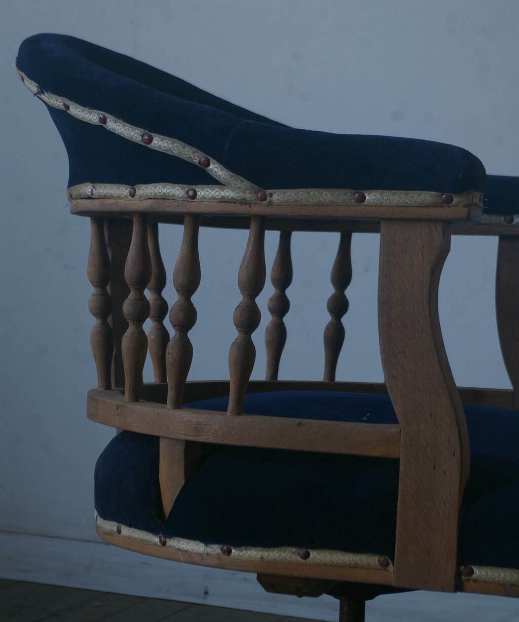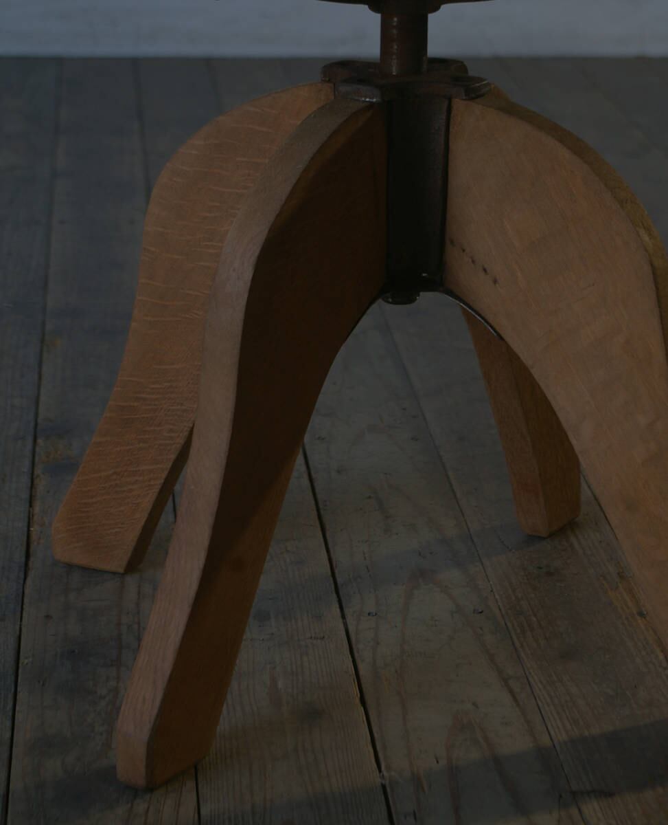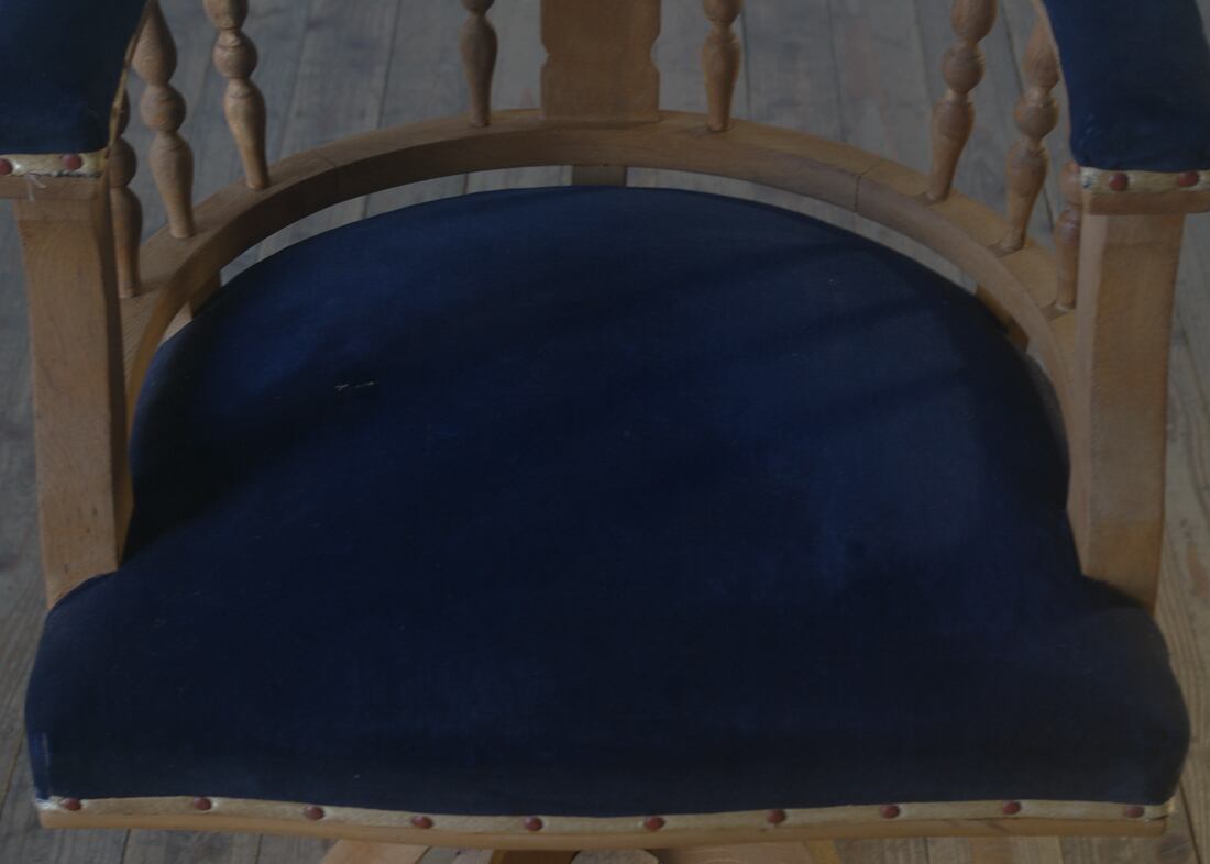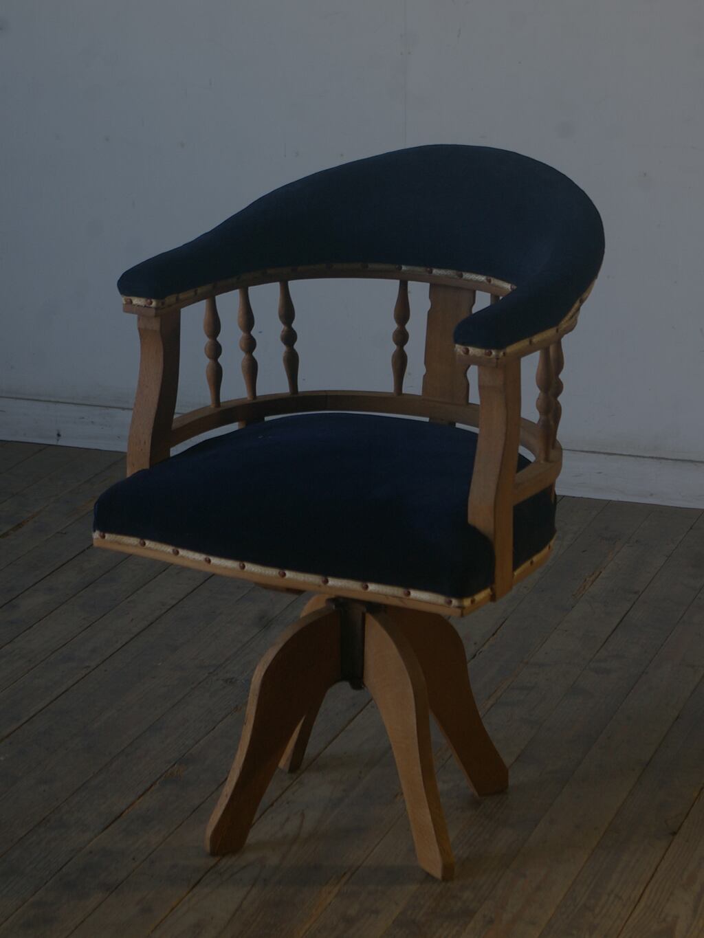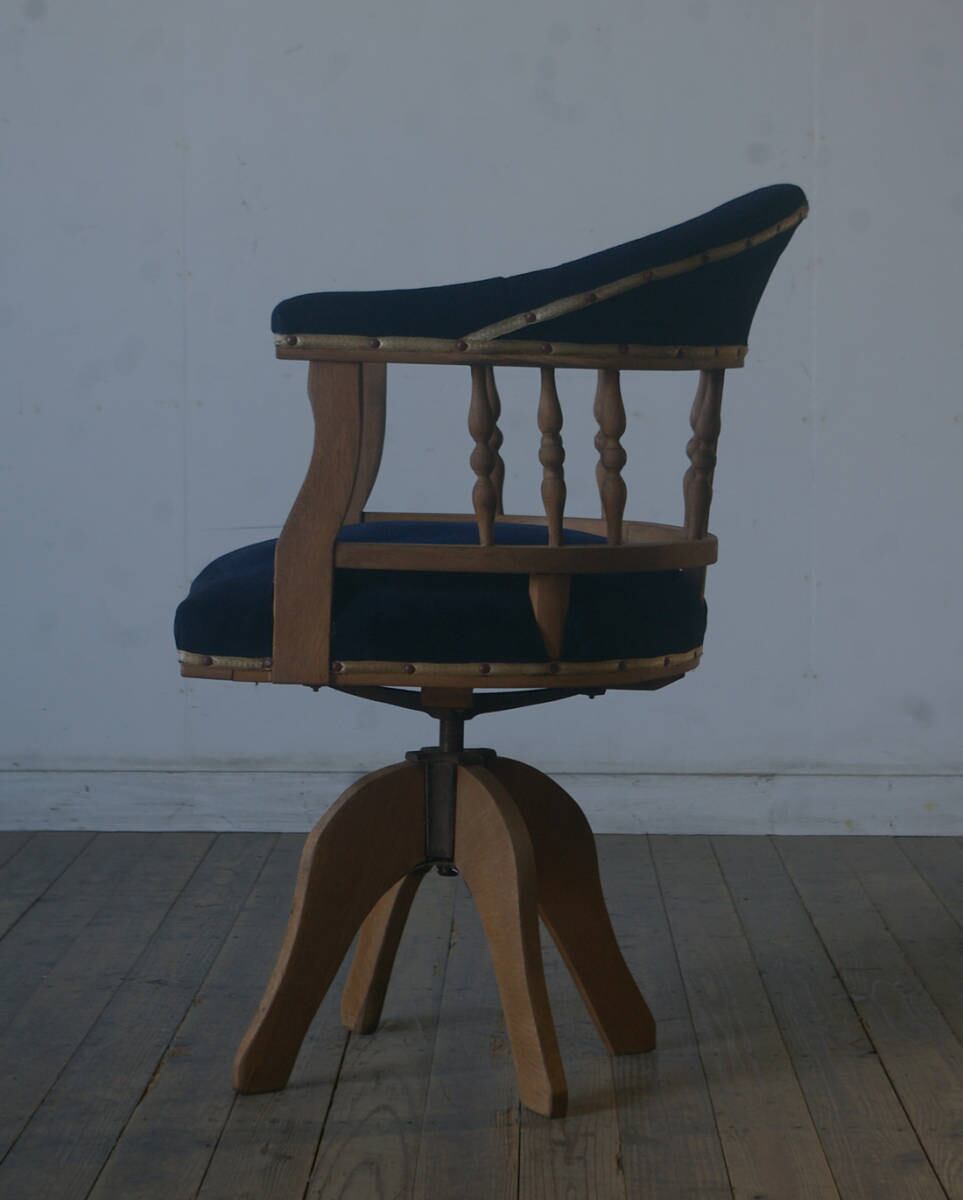立派な造りでデザインも良く、古い楢材の綺麗な木目がとても雰囲気の良いアンティーク回転チェアです。
