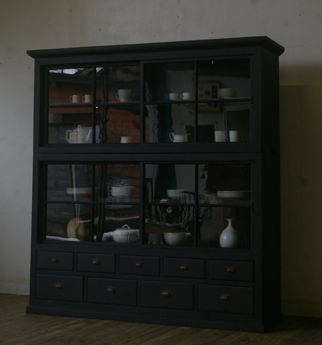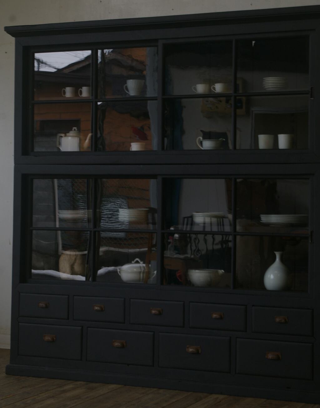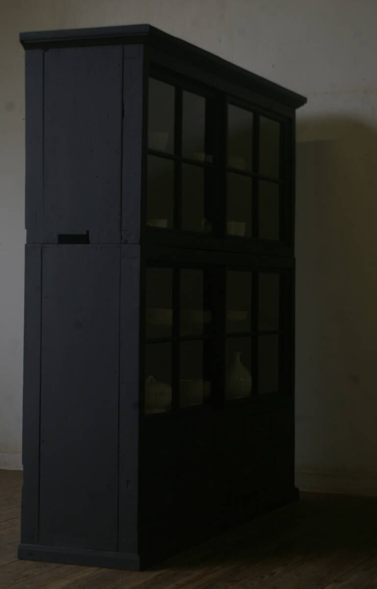 引き出し9杯◆古い重ね大きな十字ガラス戸棚 YZ2278
