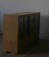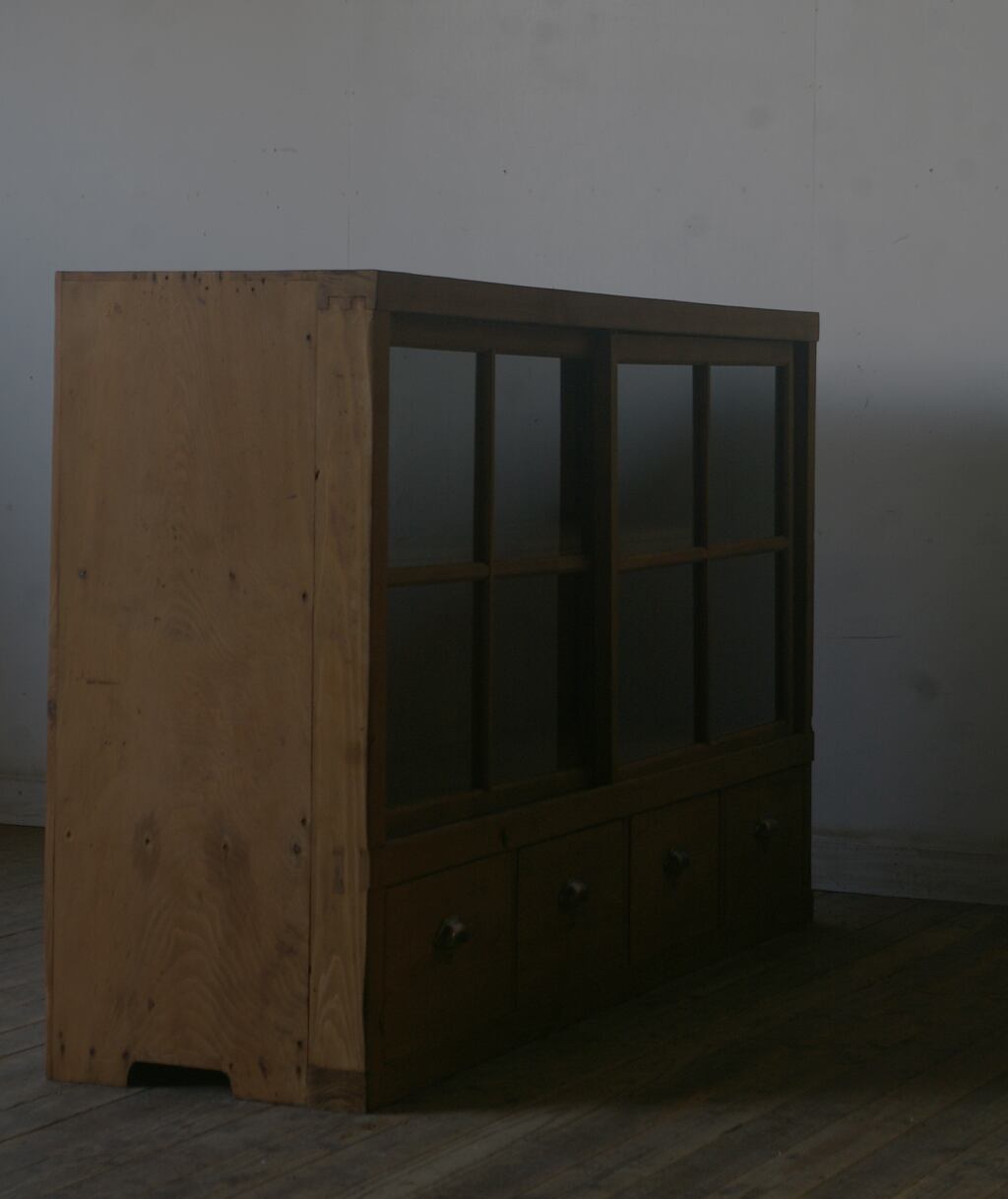引き出し4杯◆古い横長十字ガラス戸棚 YZ2280