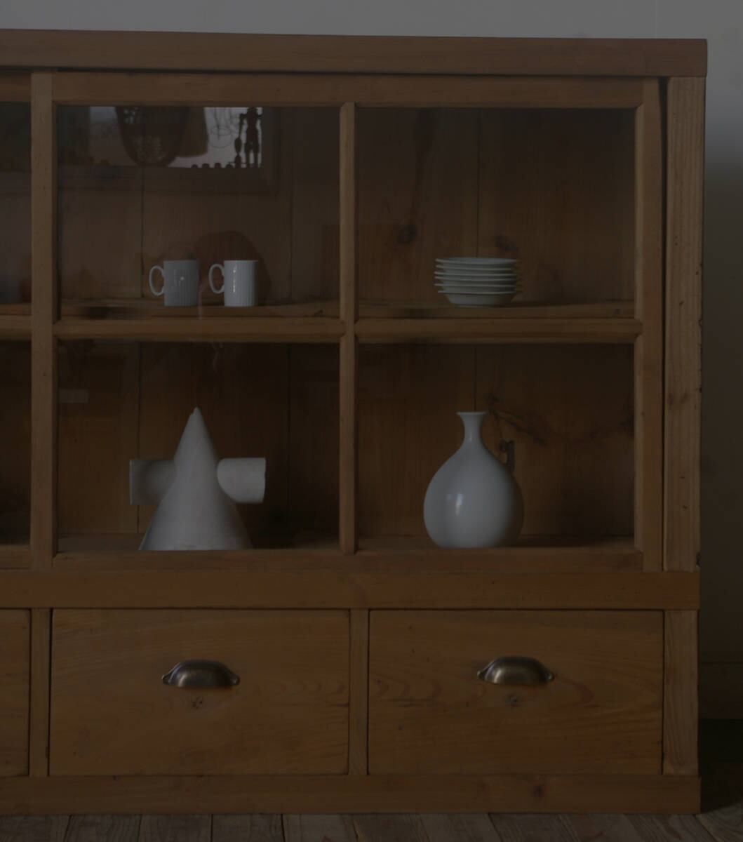 店舗やギャラリーでの什器としてやご自宅でのコレクションケースや食器棚、本棚やサイドボードなどに。