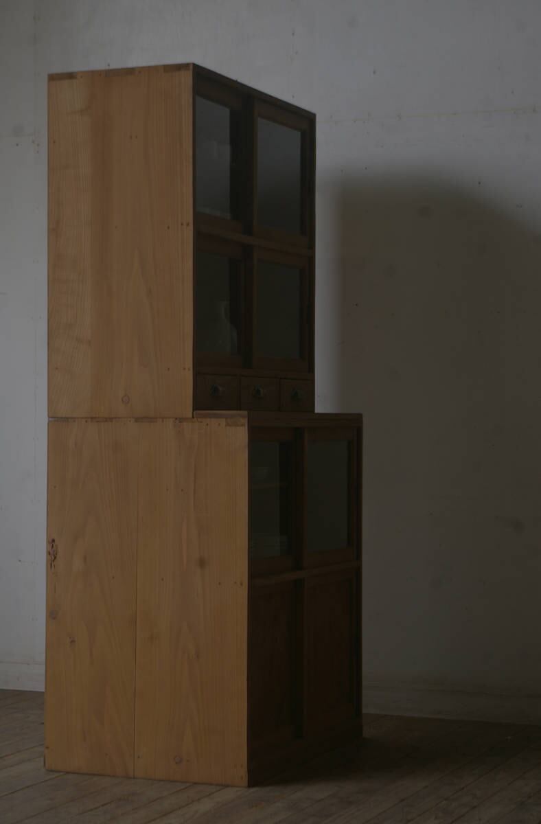 引き出し3杯◆古い重ねガラス戸棚 YZ2279