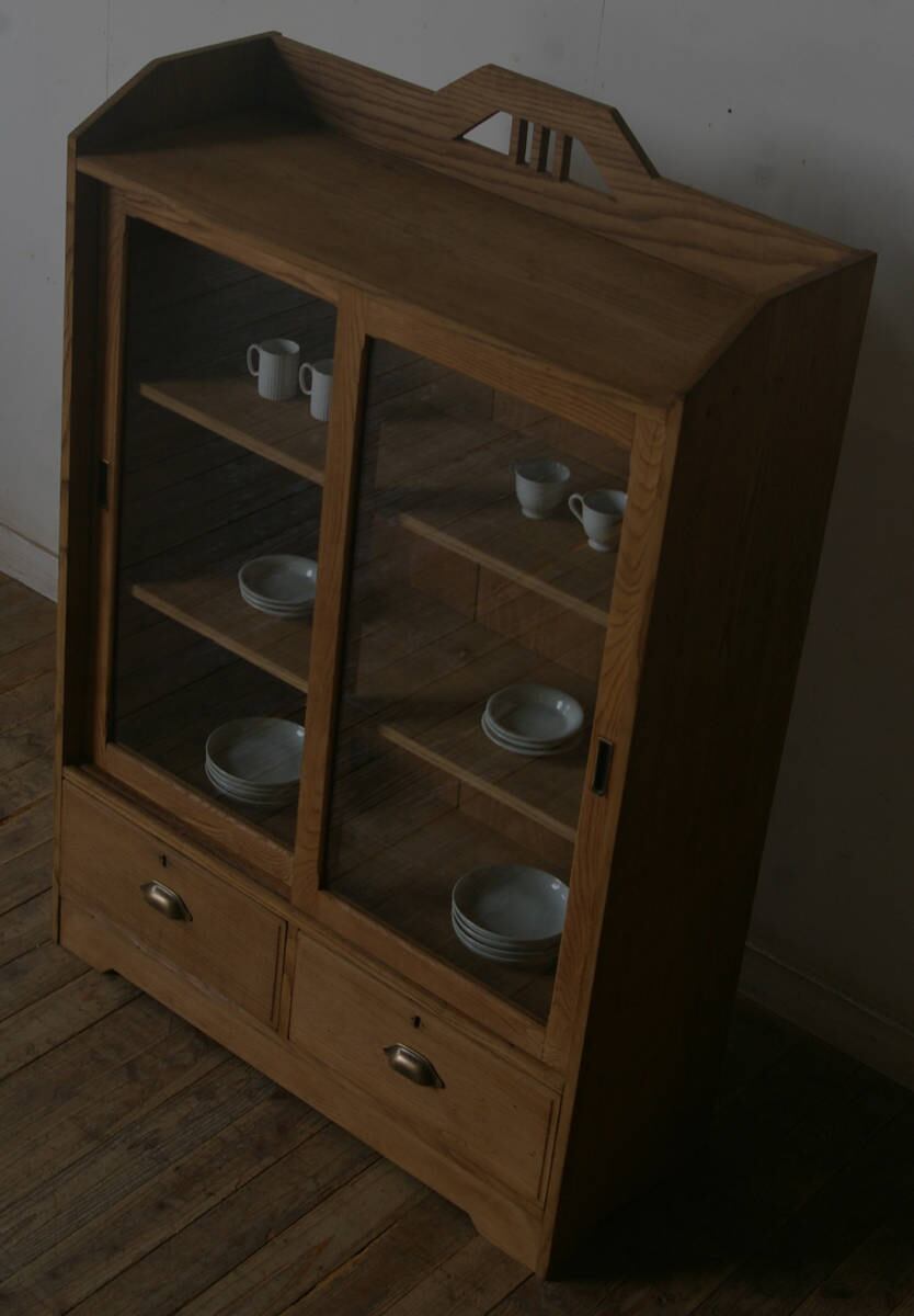 上質◆古い楢材ガラス戸棚 YZ2281