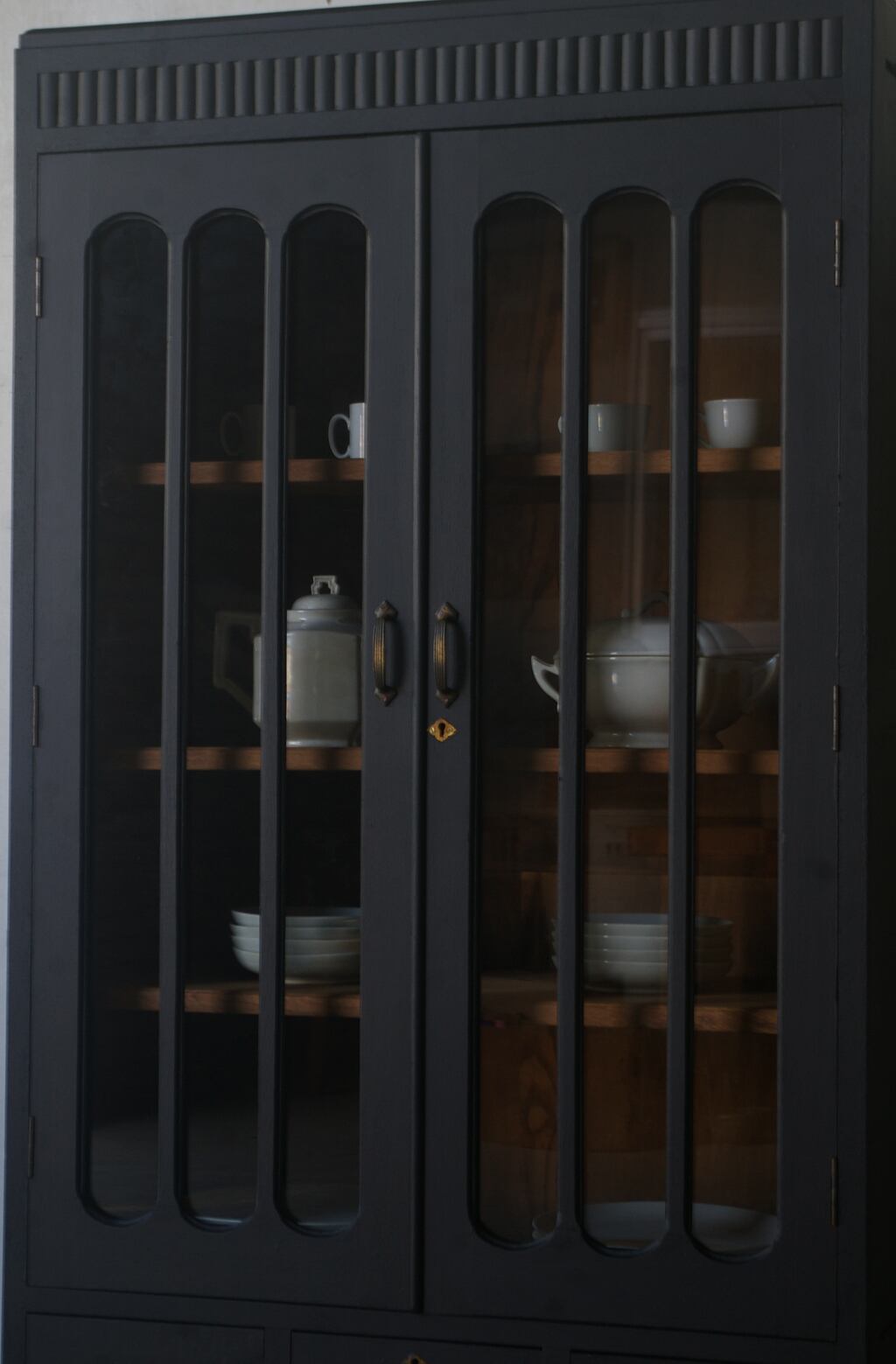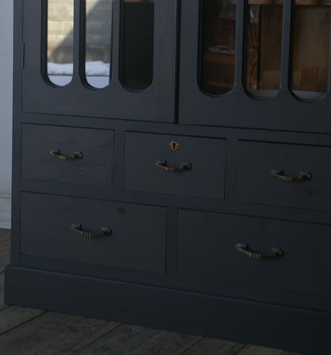 立派な造りでデザインも良く、収納力もあり、とても存在感のあるアンティークキャビネットです。