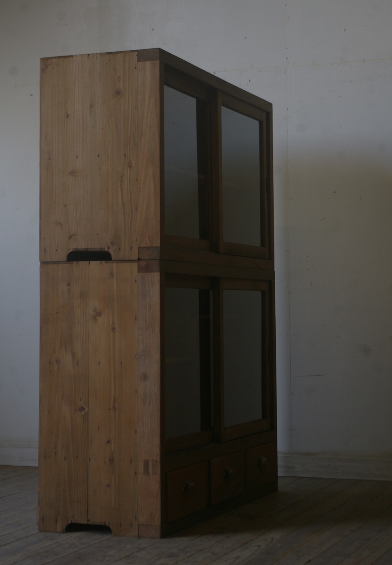 引き出し3杯古い重ねガラス戸棚 YZ2315