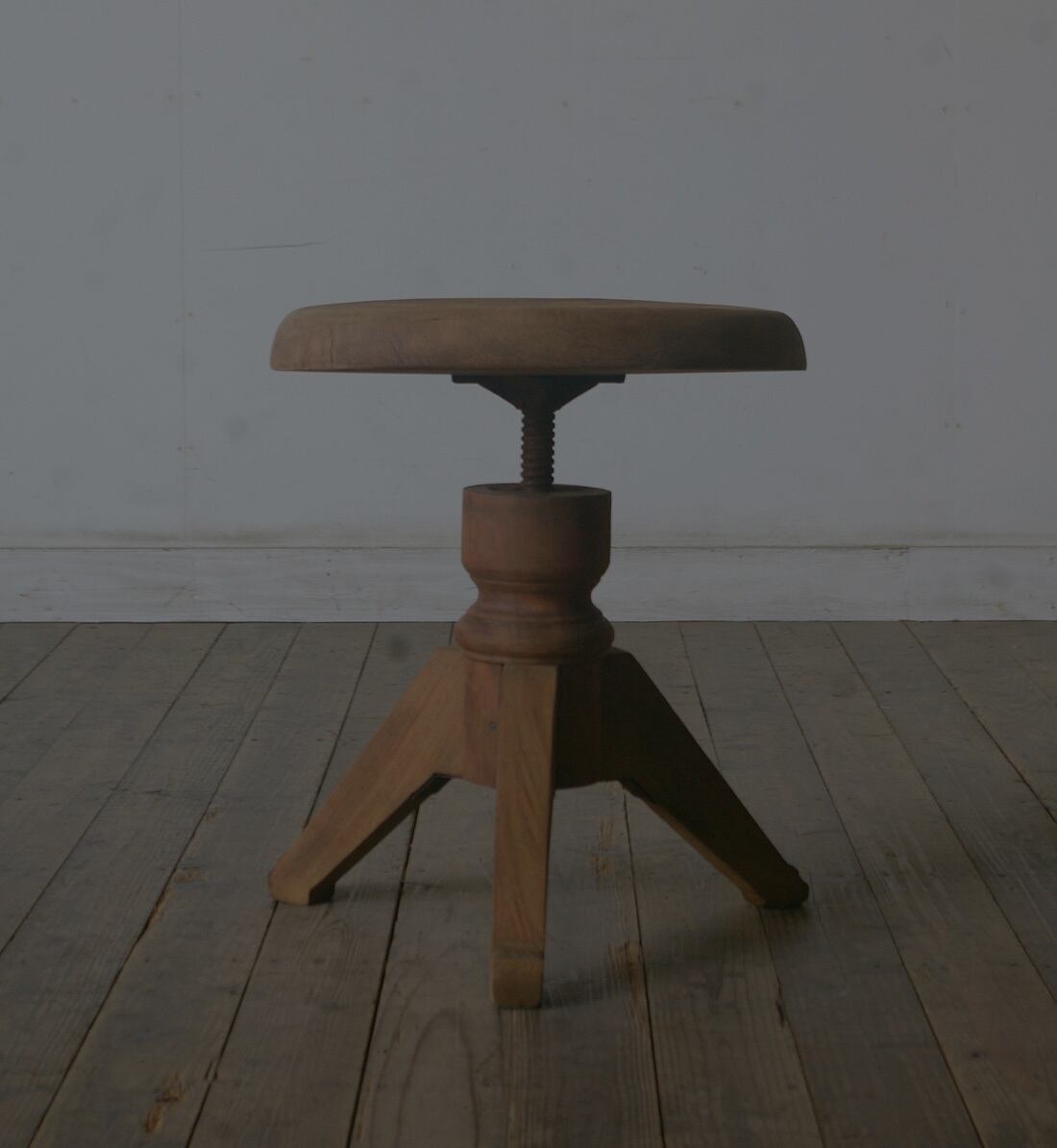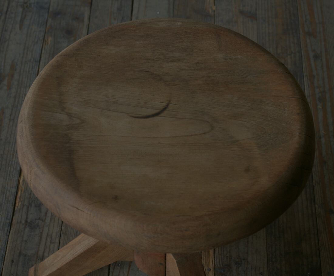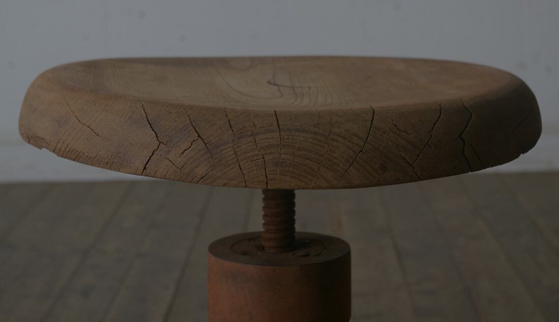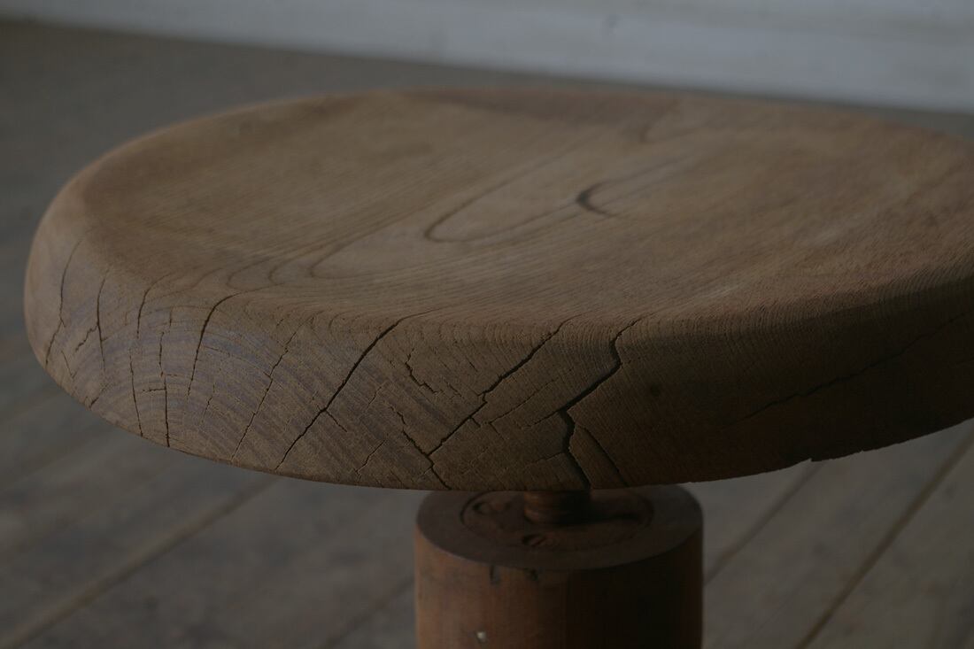 立派な造りで存在感があり、重厚な古い欅材の綺麗な木目がとても雰囲気の良いアンティーク回転丸スツールです。