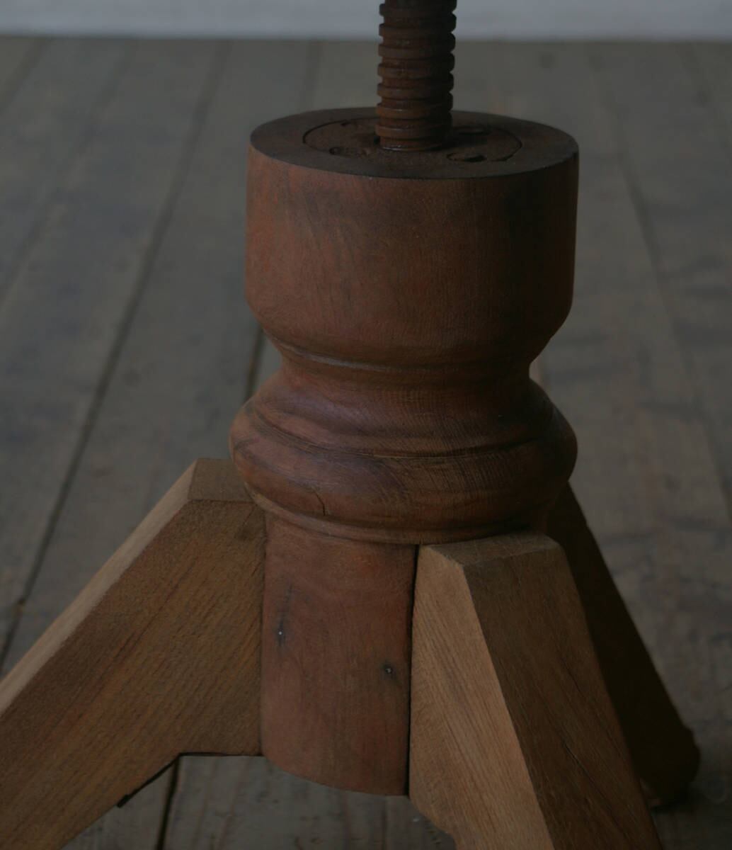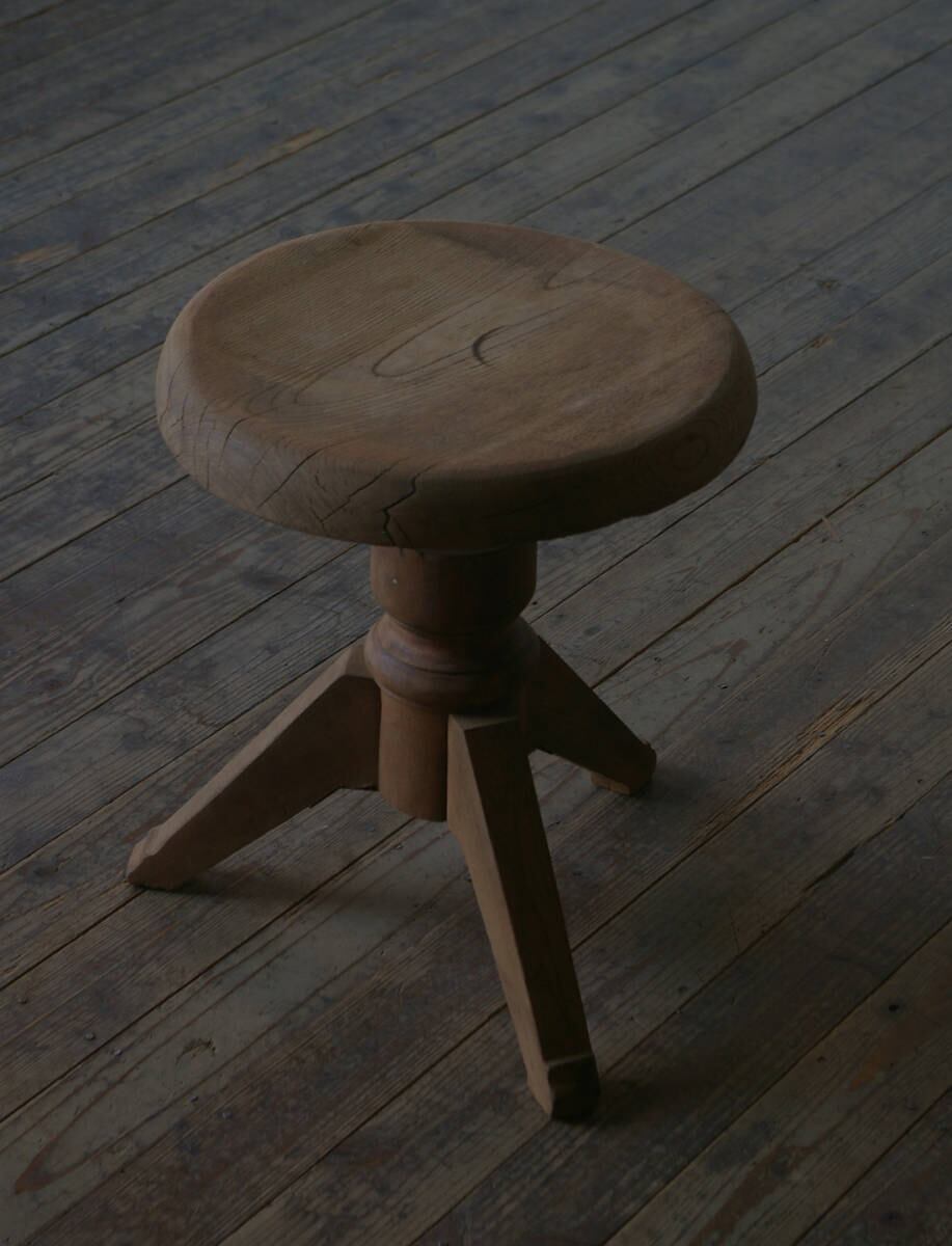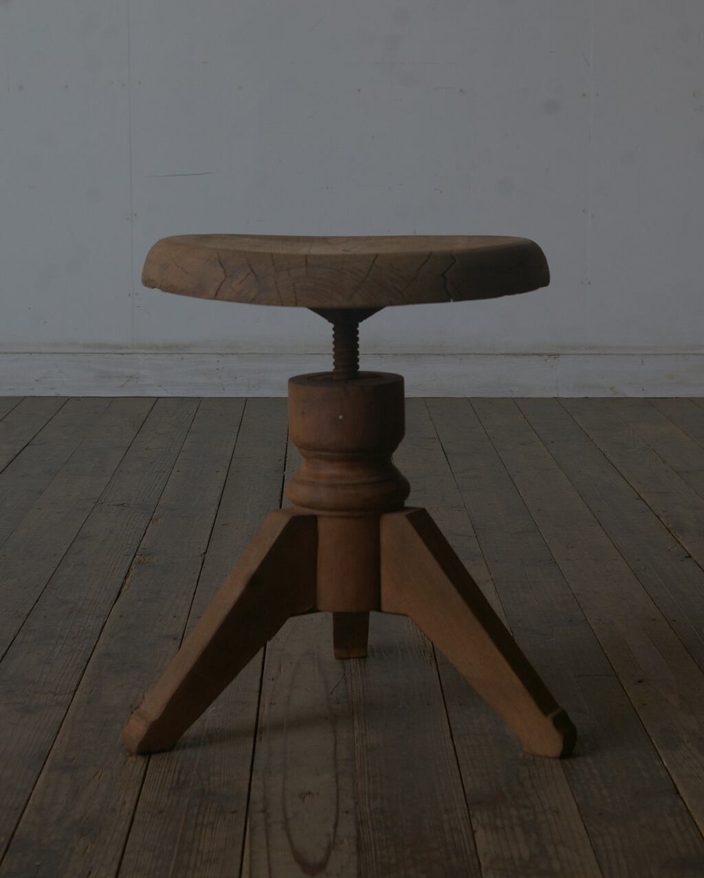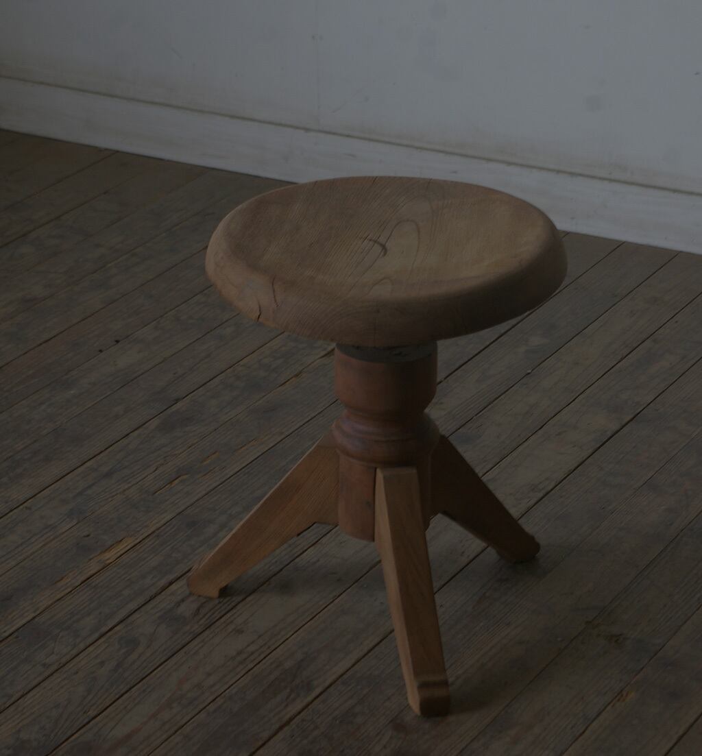 立派な造りで存在感があり、重厚な古い欅材の綺麗な木目がとても雰囲気の良いアンティーク回転丸スツールです。