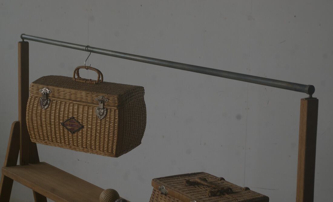 古い横長陳列棚◆アイアンラック付き YZ2332