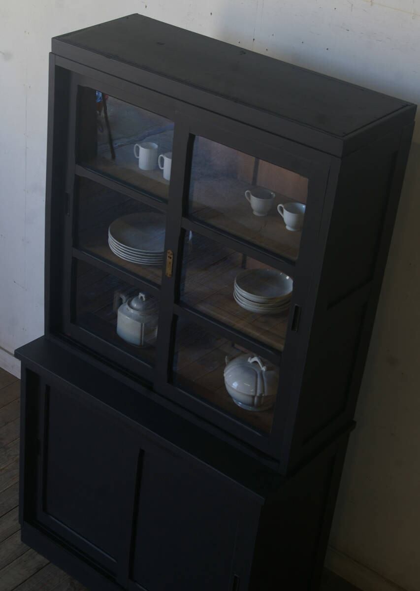 シンプルなデザインで収納力もあり、とても存在感のあるアンティークガラス戸キャビネットです。