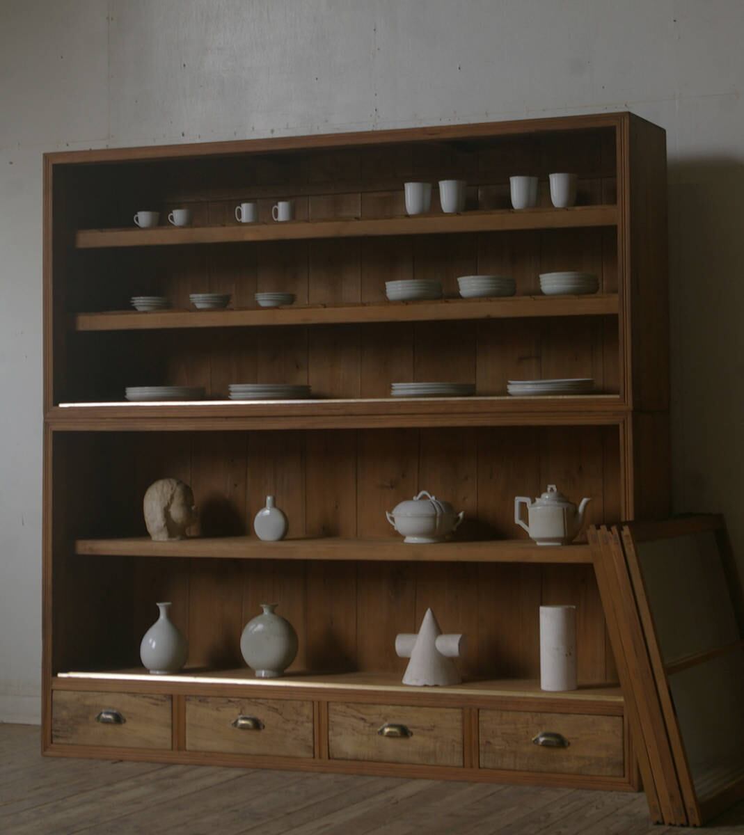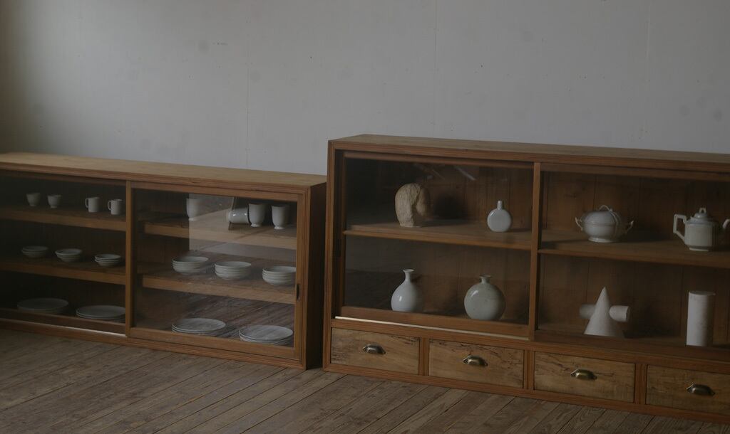 店舗やギャラリーでの什器としてやご自宅でのコレクションケースや食器棚、本棚などに。