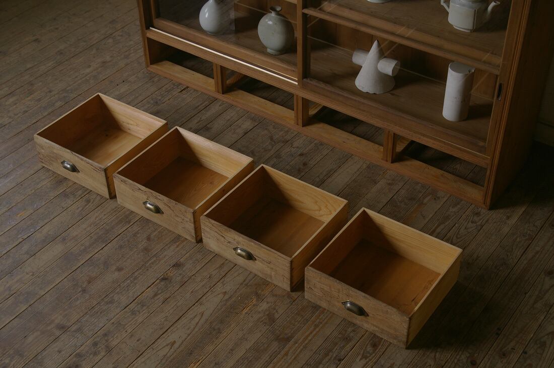薄型◆引き出し4杯古い重ねガラス戸棚 YZ2338