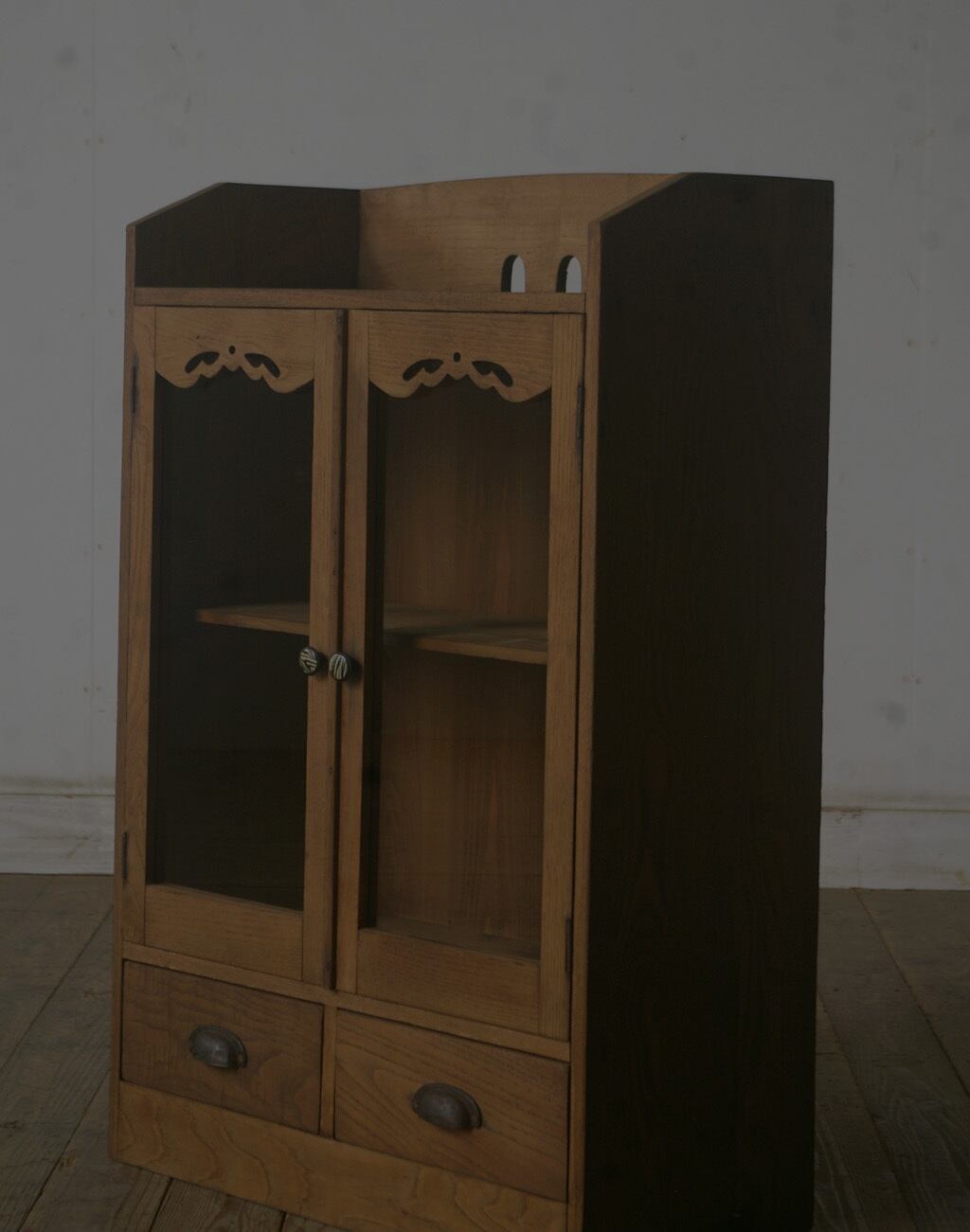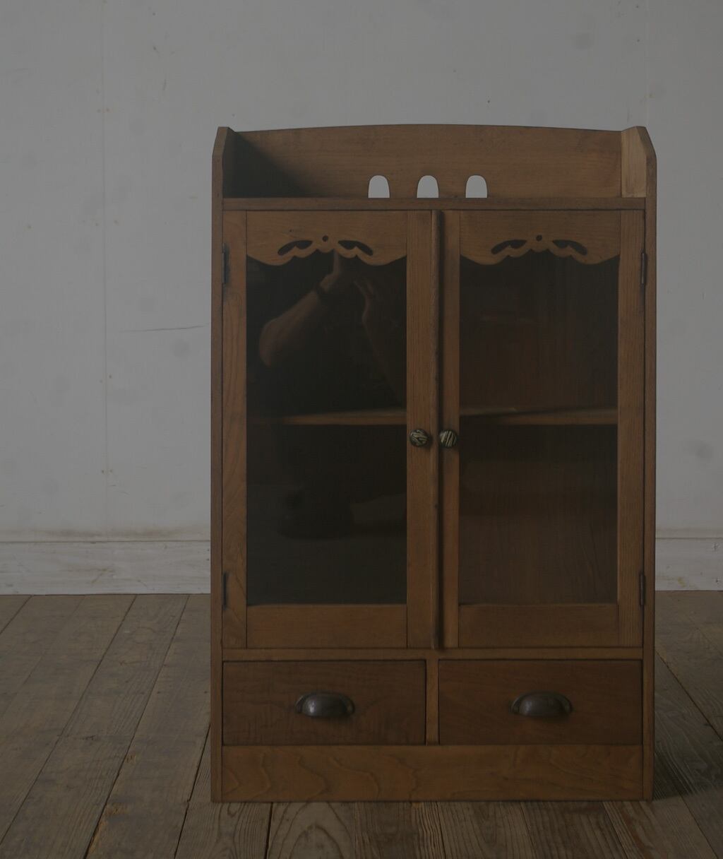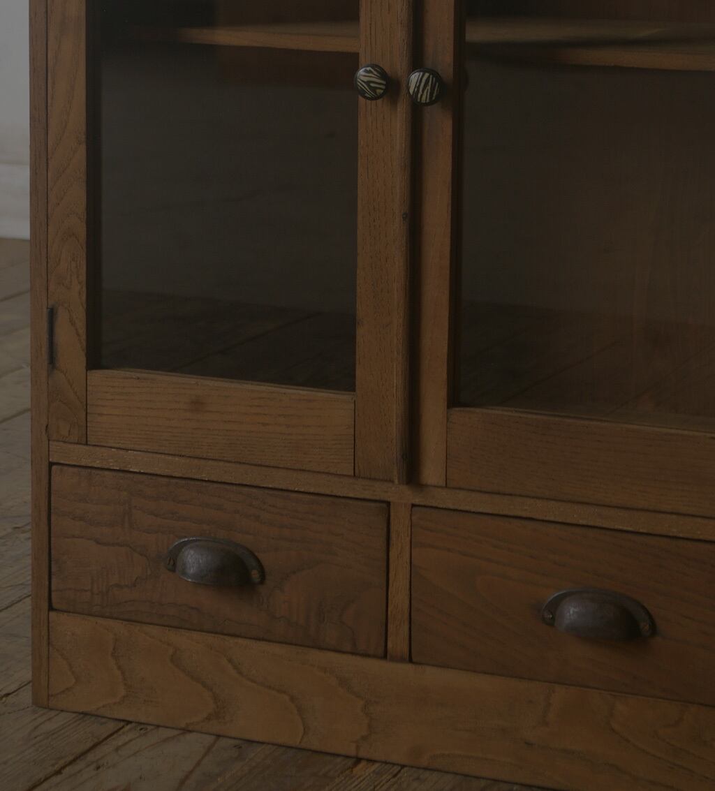 楢材 造りの良いガラス扉飾り棚 YZ2350