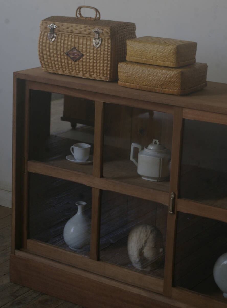 古い横長十字ガラス戸棚 YZ2356