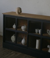 古い横長カウンター十字ガラス戸棚 YZ2375