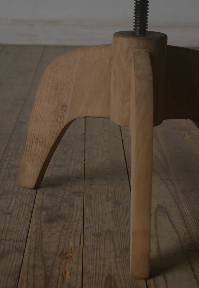 鉄座面&木脚 古い回転丸スツール YZ2373