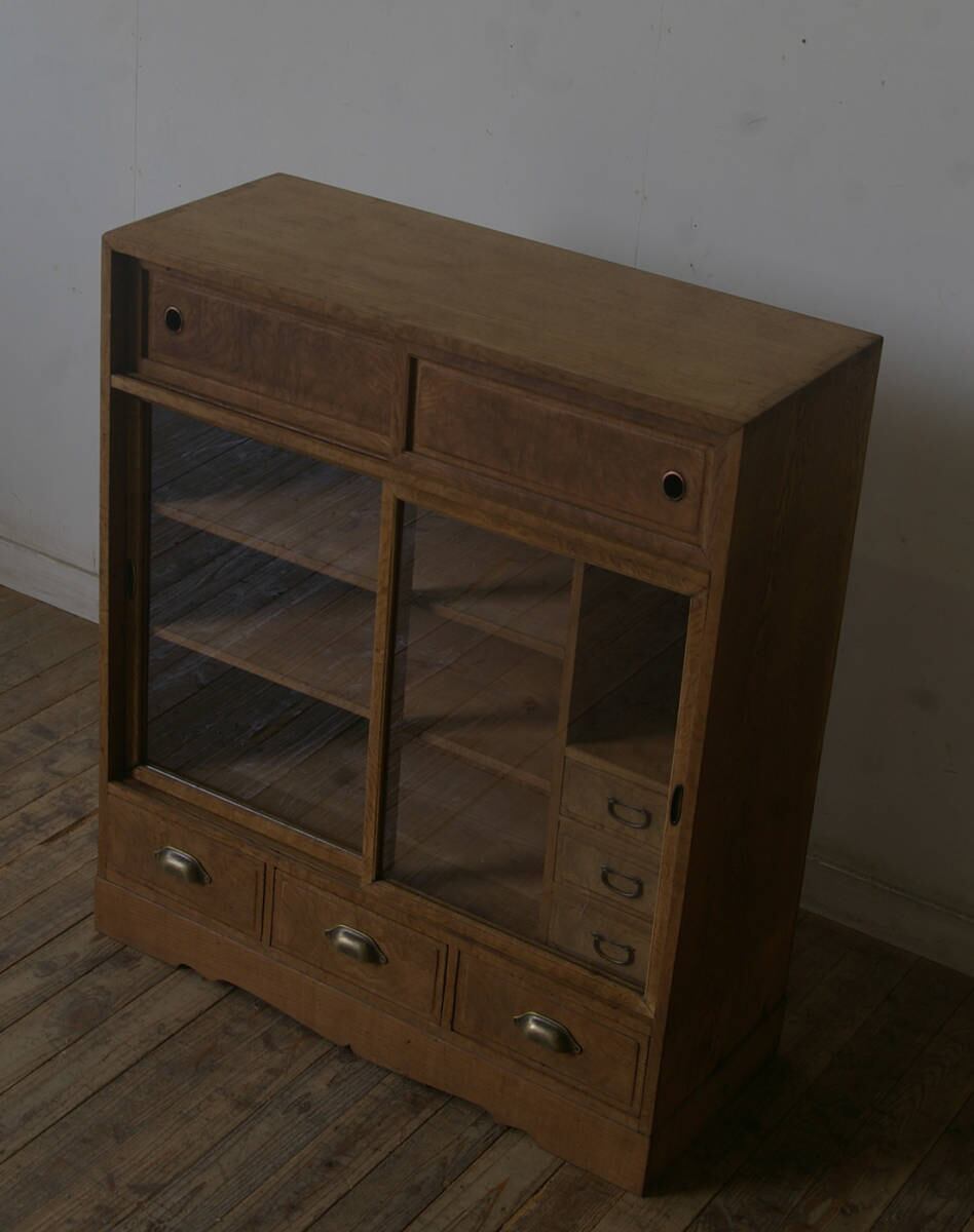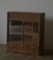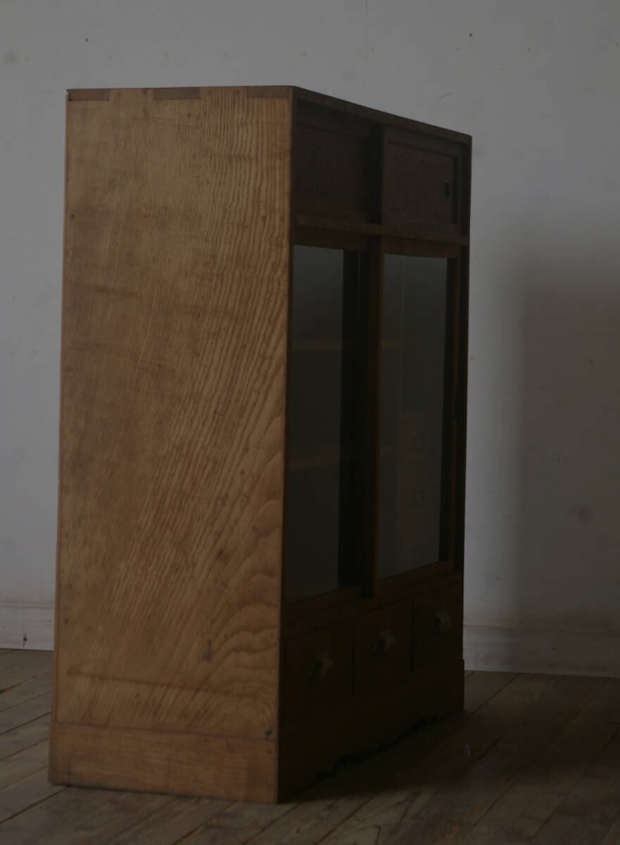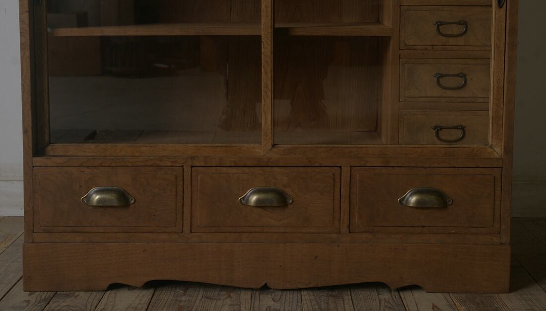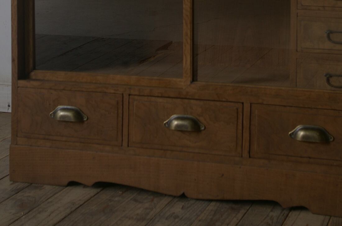 古手 造りの良い引き出し3杯ガラス戸棚 YZ2388