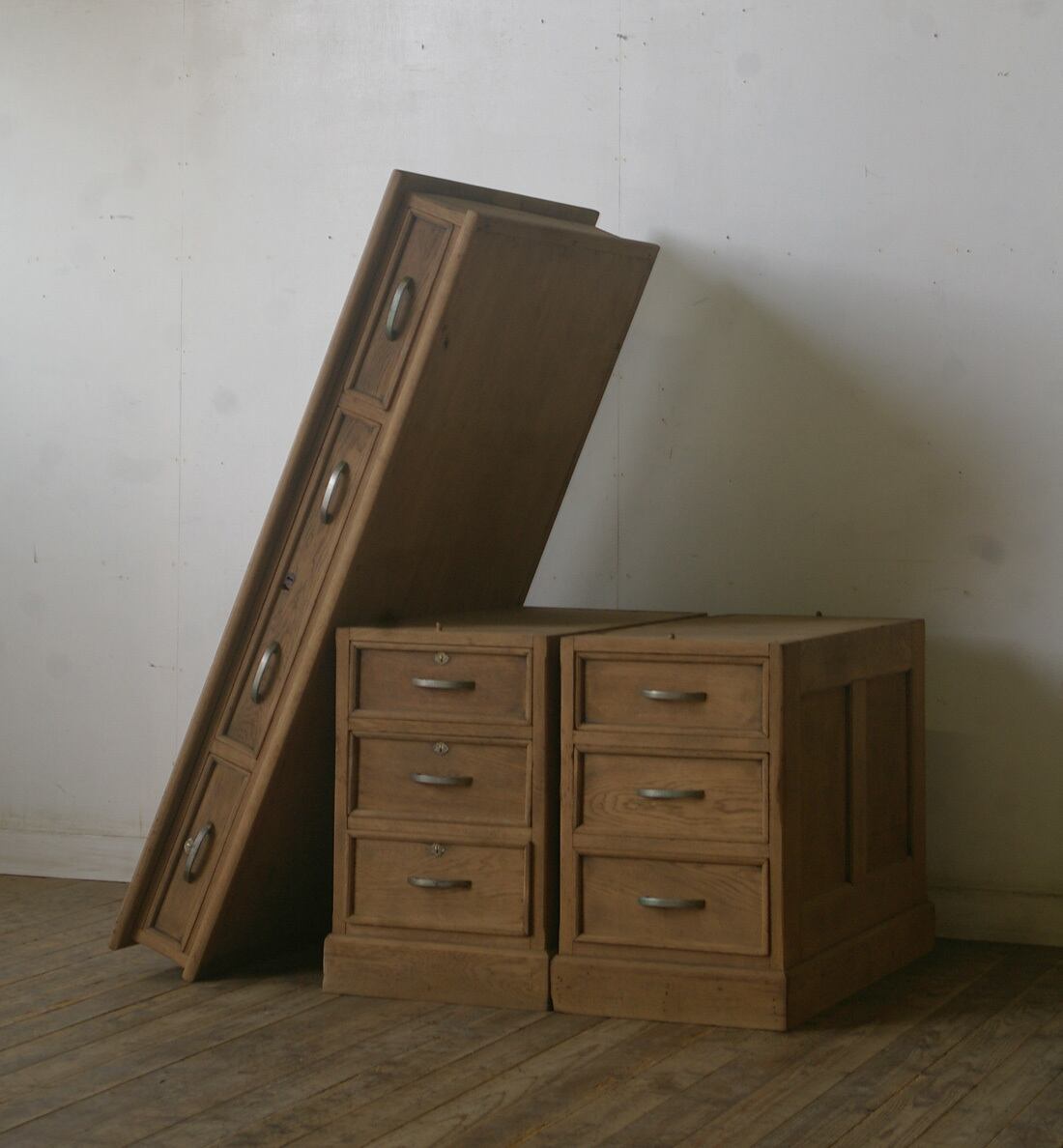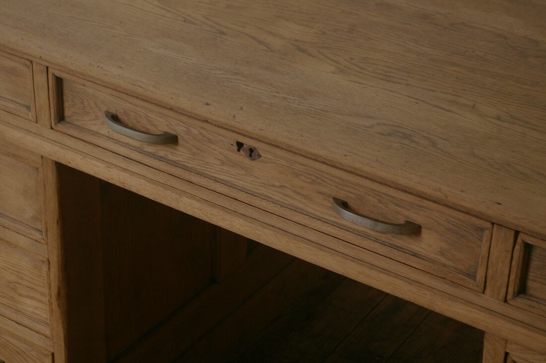 分解式引き出し9杯古い楢材両袖机 YZ2397