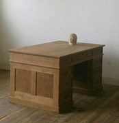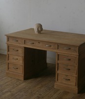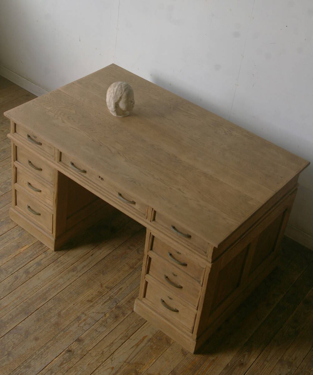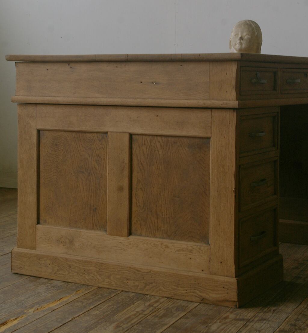 造りも良く、重厚な古い楢材の綺麗な木目がとても雰囲気の良いアンティーク分解式大きな両袖机です。店舗やギャラリーでのカウンターや什器、ご自宅でのダイニングテーブルや作業台などに。