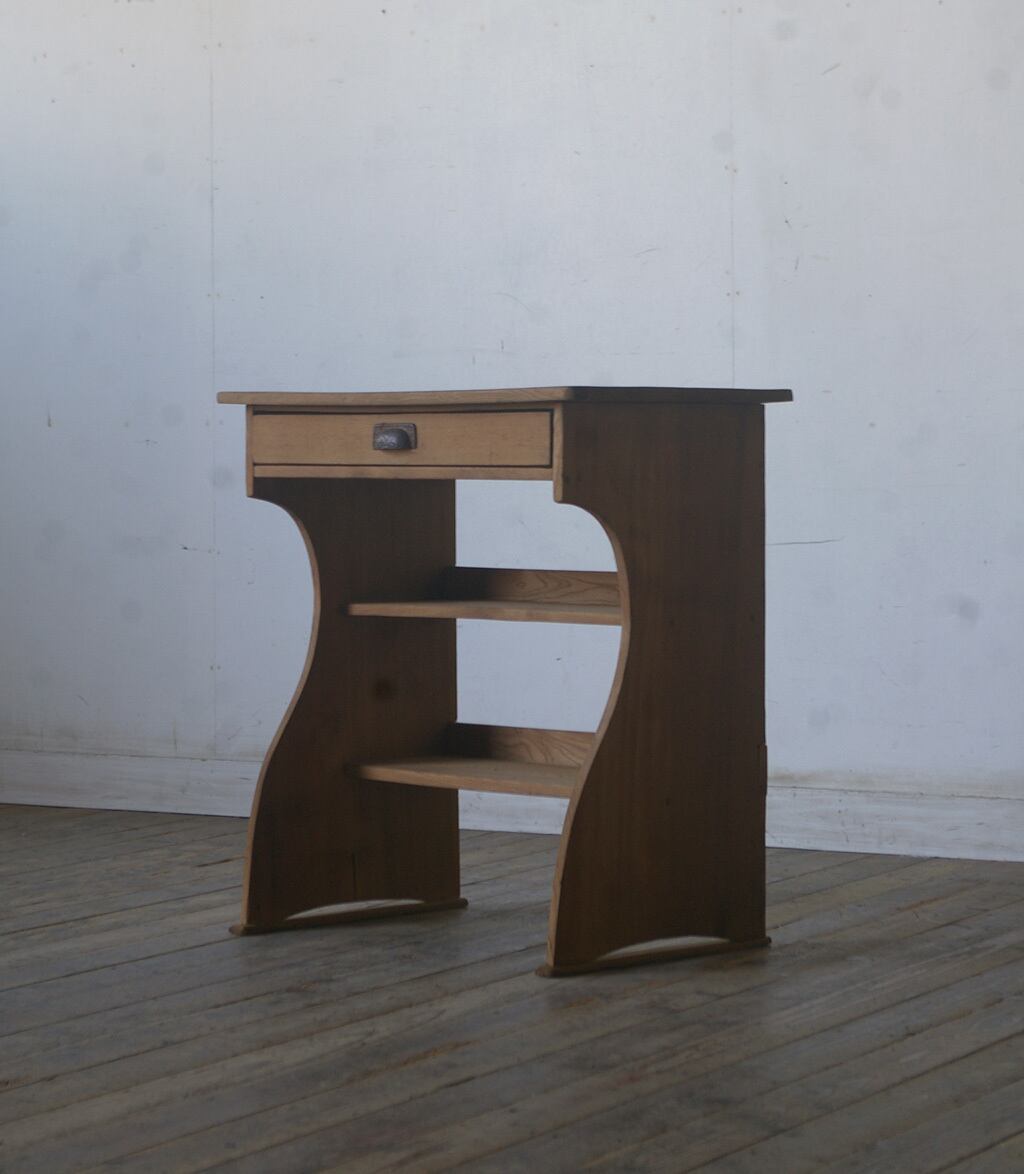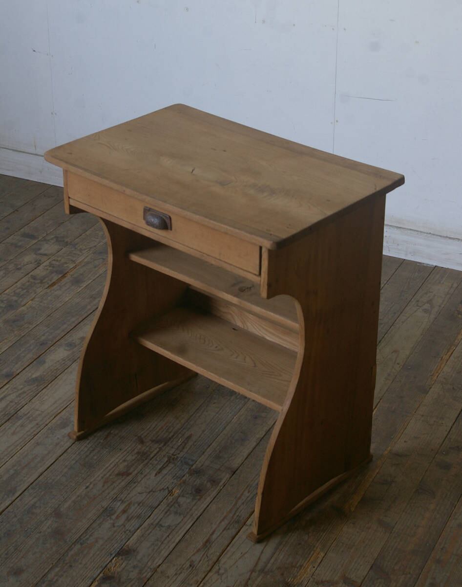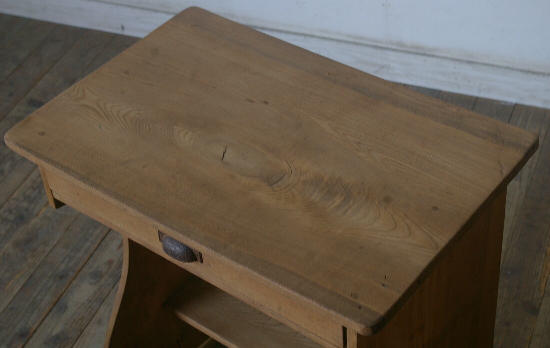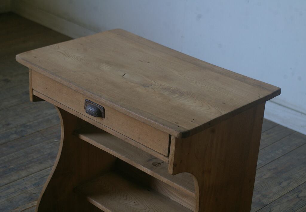 シンプルで造りも良く、古い無垢材の綺麗な木目がとても雰囲気の良いアンティーク展示台テーブルです。