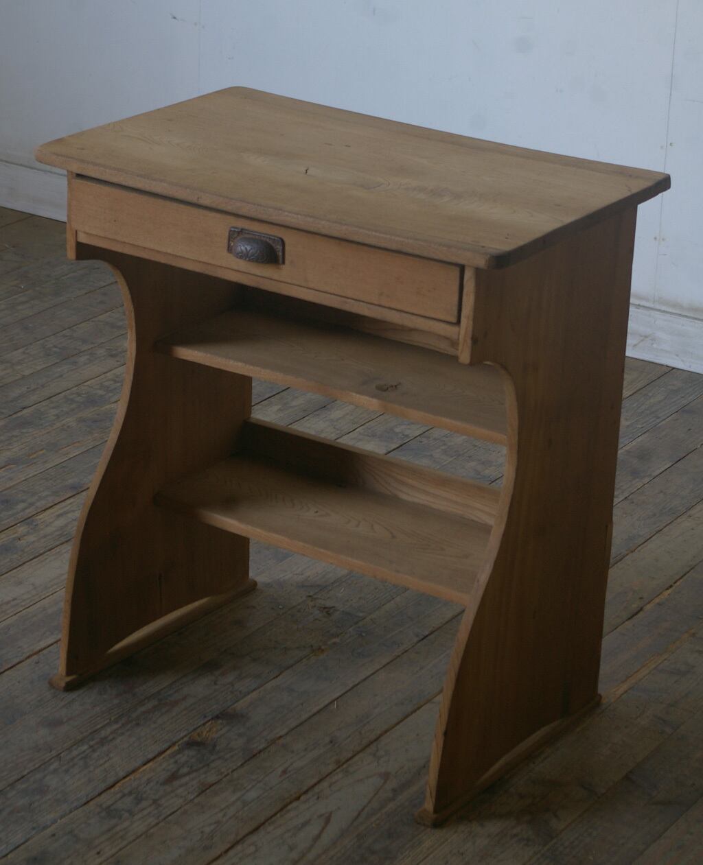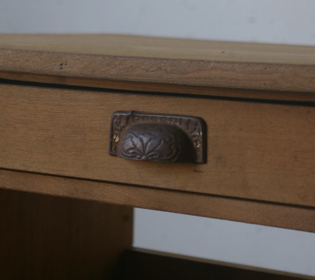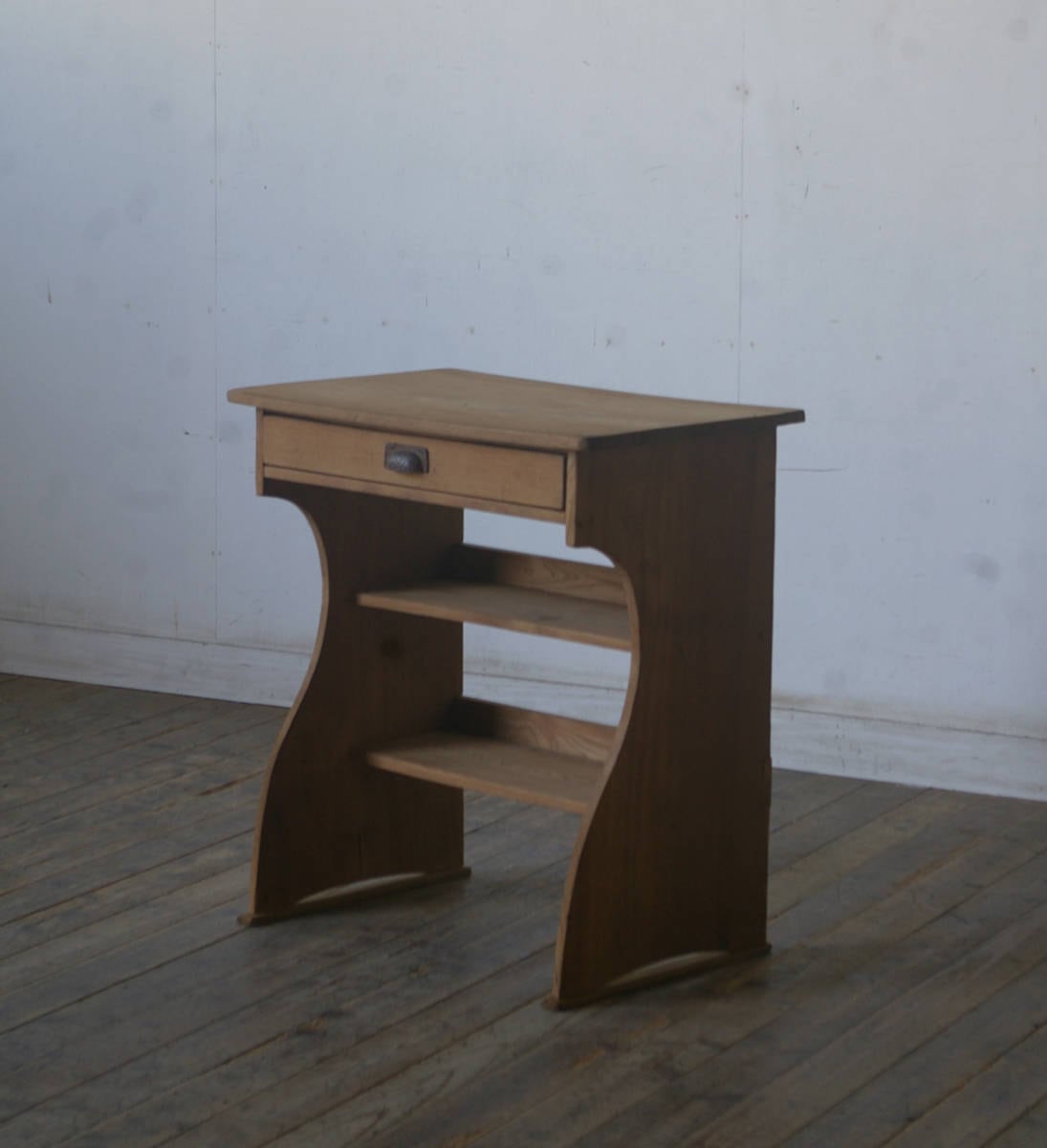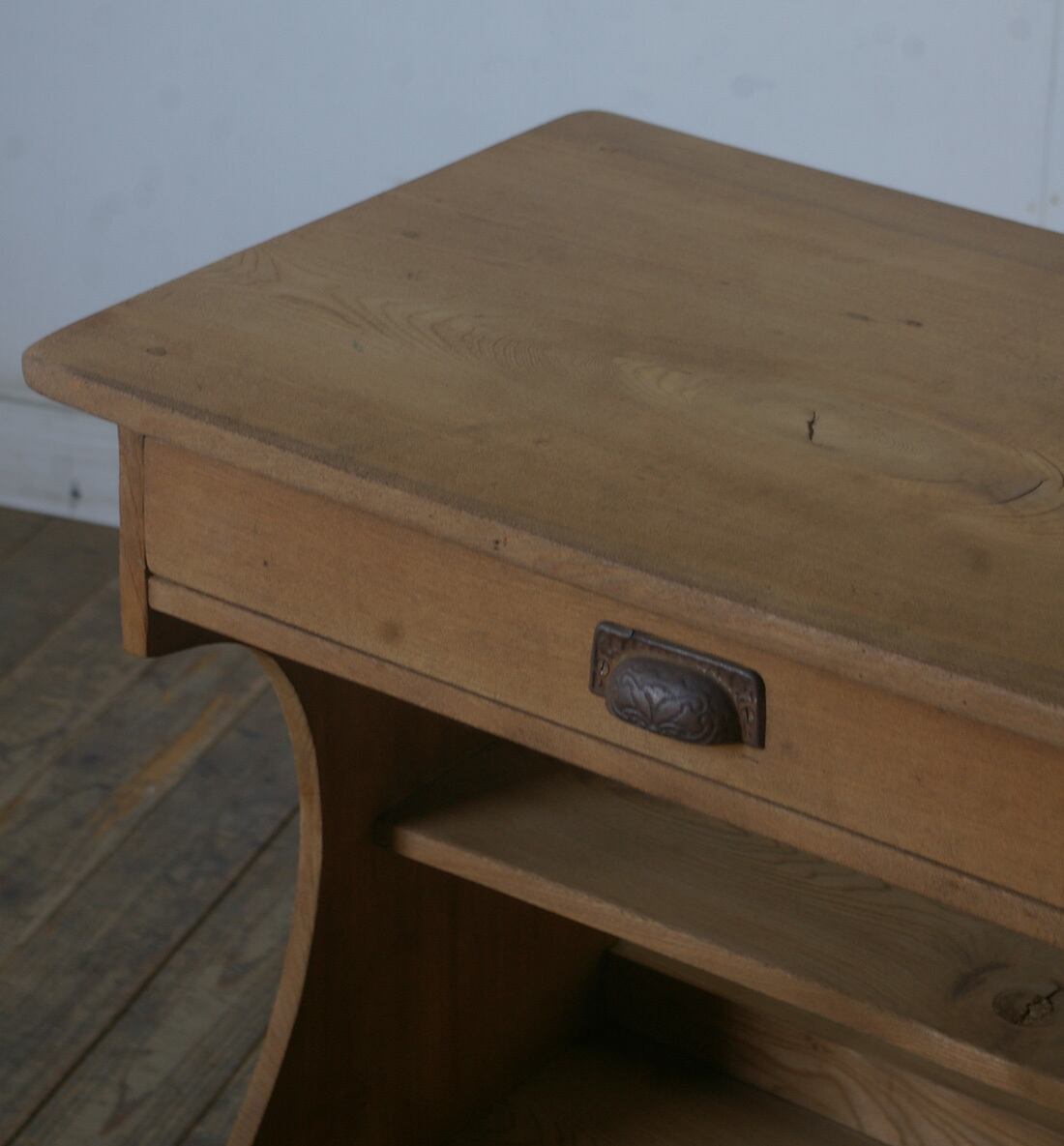 シンプルで造りも良く、古い無垢材の綺麗な木目がとても雰囲気の良いアンティーク展示台テーブルです。