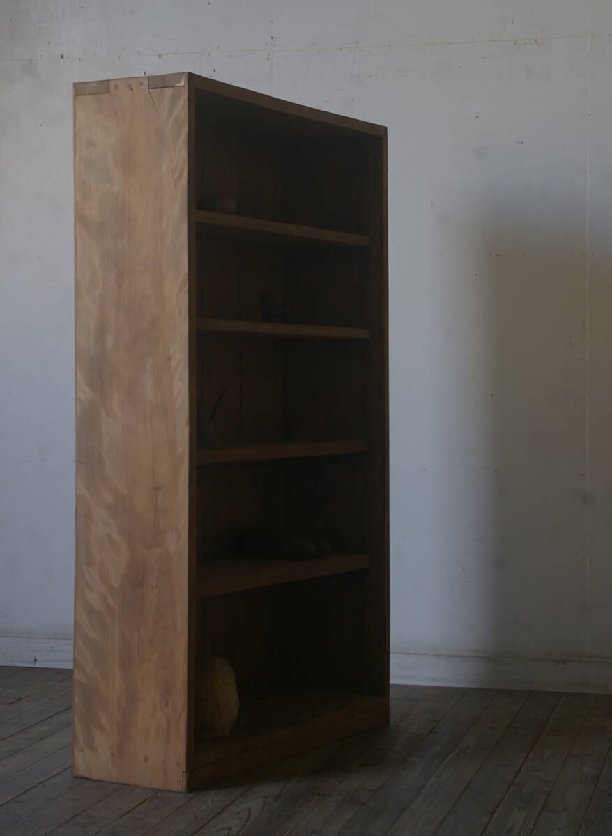 シンプルで収納力もあり、重厚な古い無垢材の綺麗な木目がとても雰囲気の良いアンティーク陳列棚です。