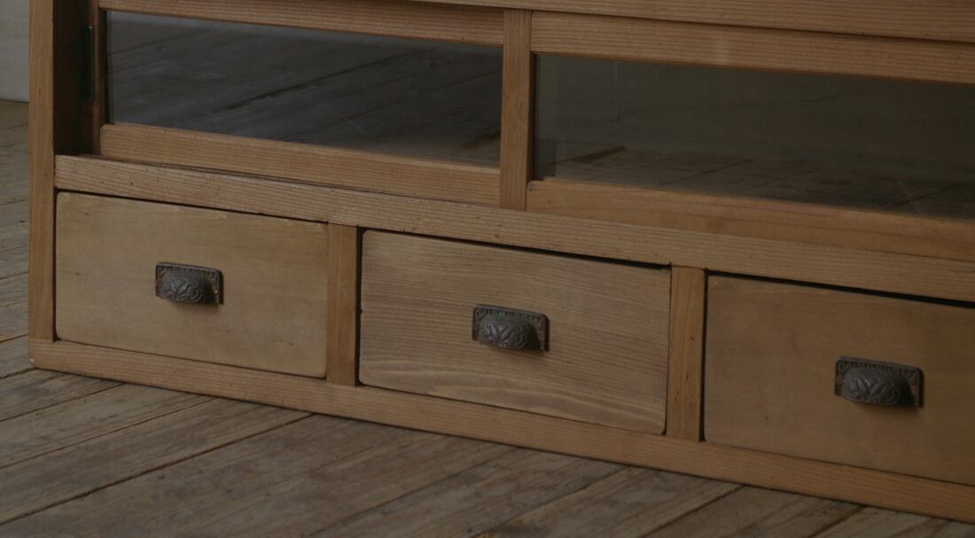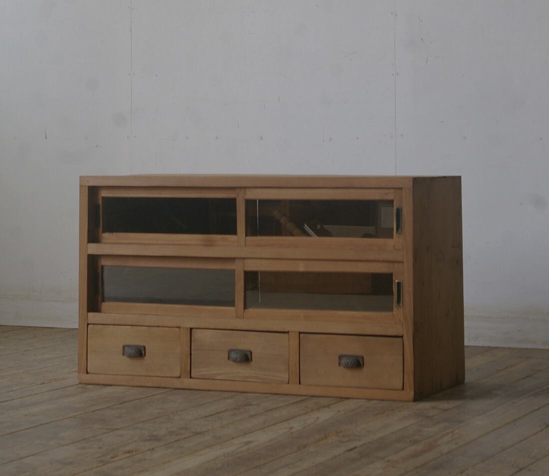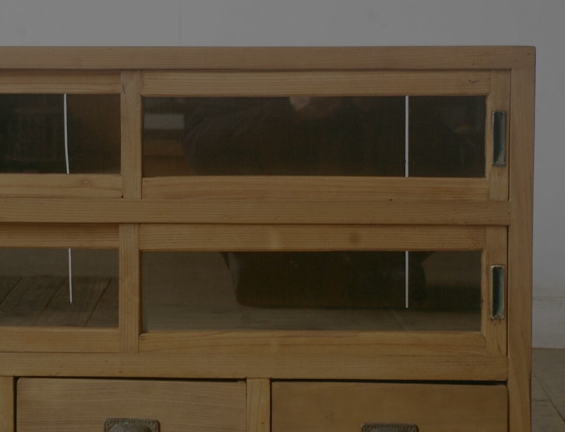 引き出し3杯古い4枚ガラス戸棚 YZ2416