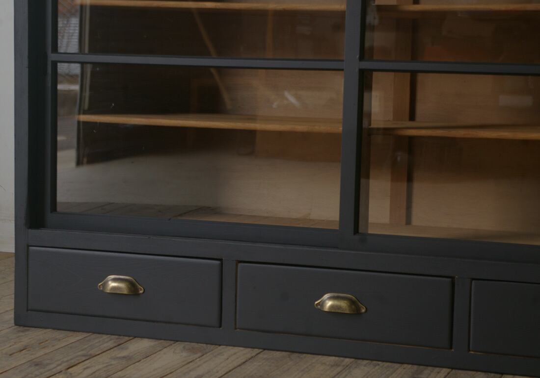 収納力もあり存在感のあるアンティークガラス戸棚です。