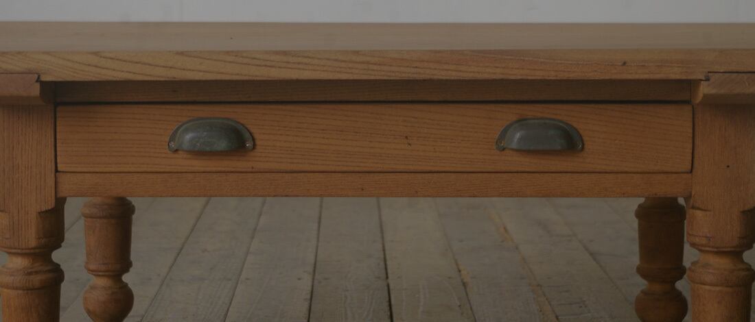 古い欅材の綺麗な木目がとても雰囲気の良いアンティークローテーブルです。