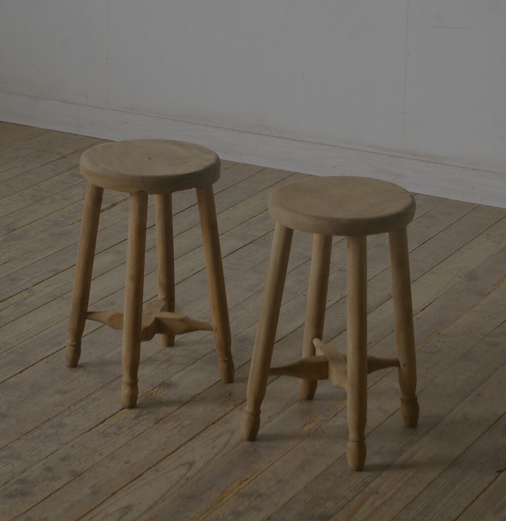 シンプルなグッドデザインで雰囲気の良いアンティーク丸スツール2脚セットです。