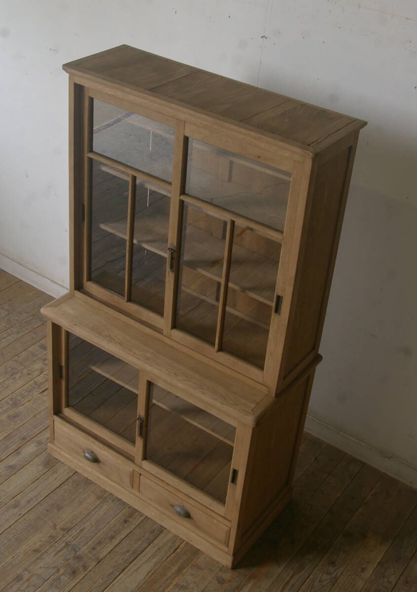 古手 楢材 薬局屋の造りの良いガラス戸棚 YZ2429