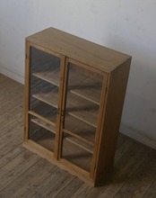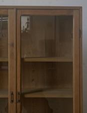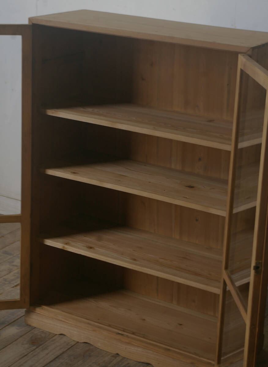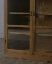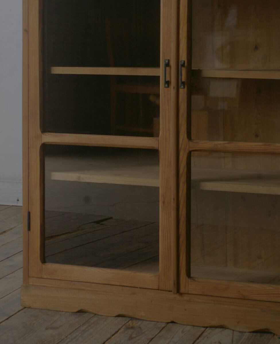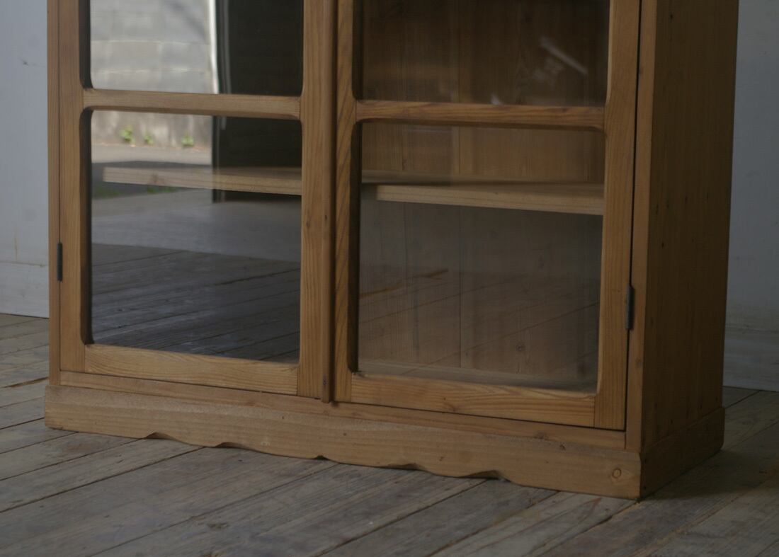古い無垢材の綺麗な木目がとても雰囲気の良いアンティークガラス扉キャビネットです。