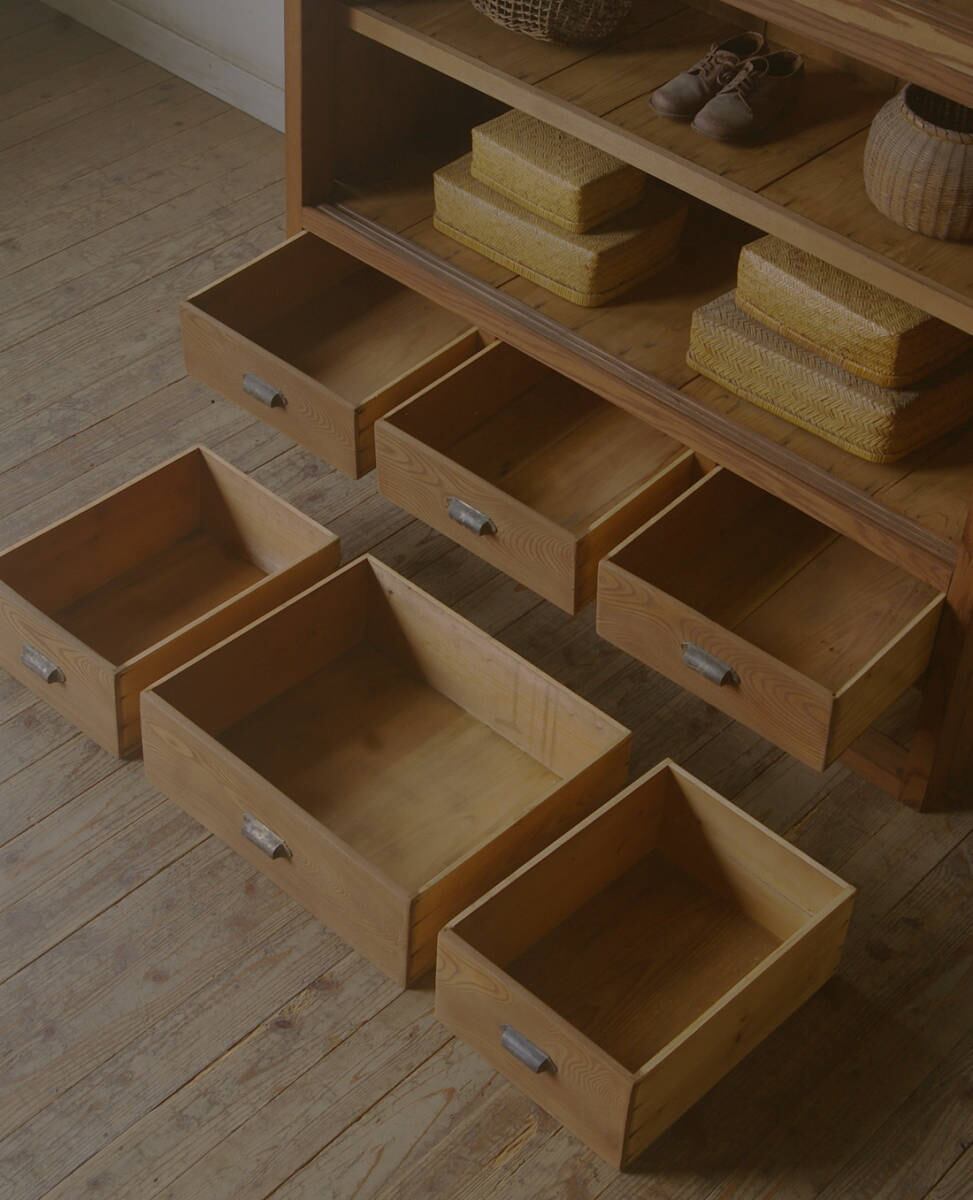 店舗やギャラリー、カフェでの什器としてやご自宅でのコレクション展示棚や食器棚、本棚などに。
