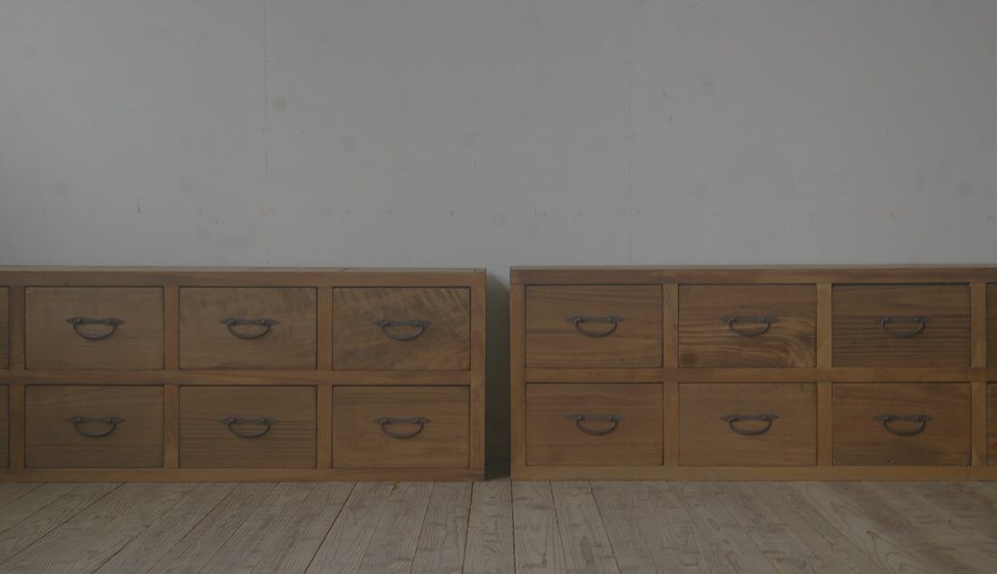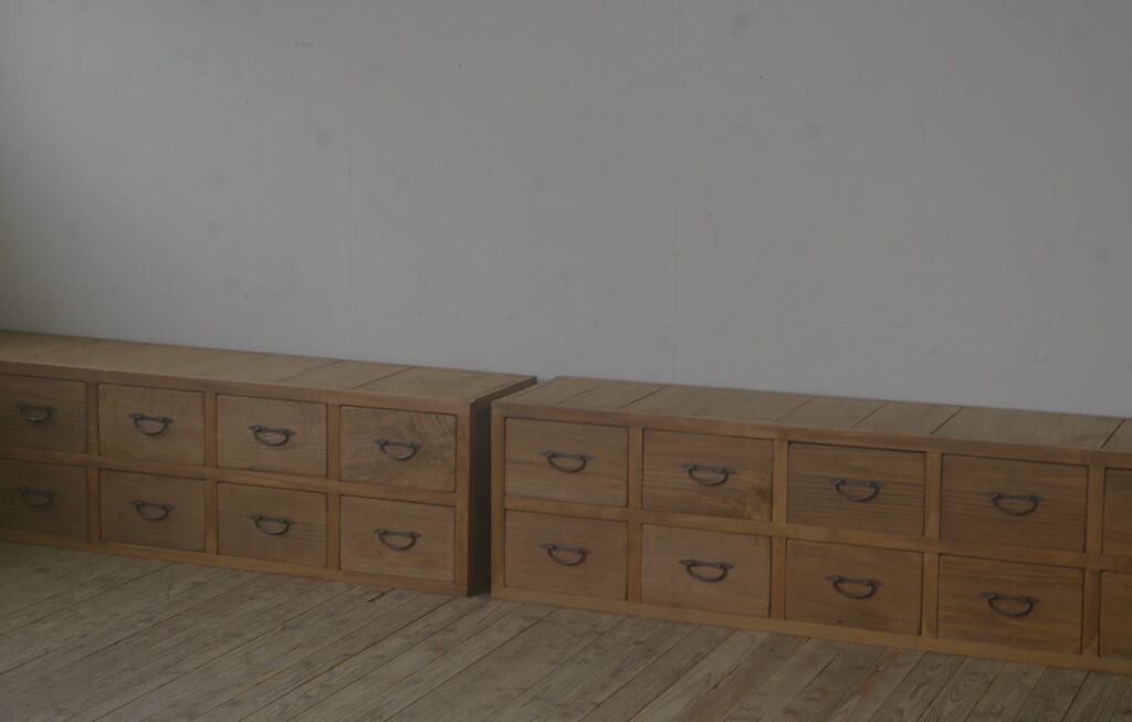店舗やギャラリーでのカウンターや什器、ご自宅でのコレクション棚や仕分け棚、書庫やパーツケースやサイドボードに。