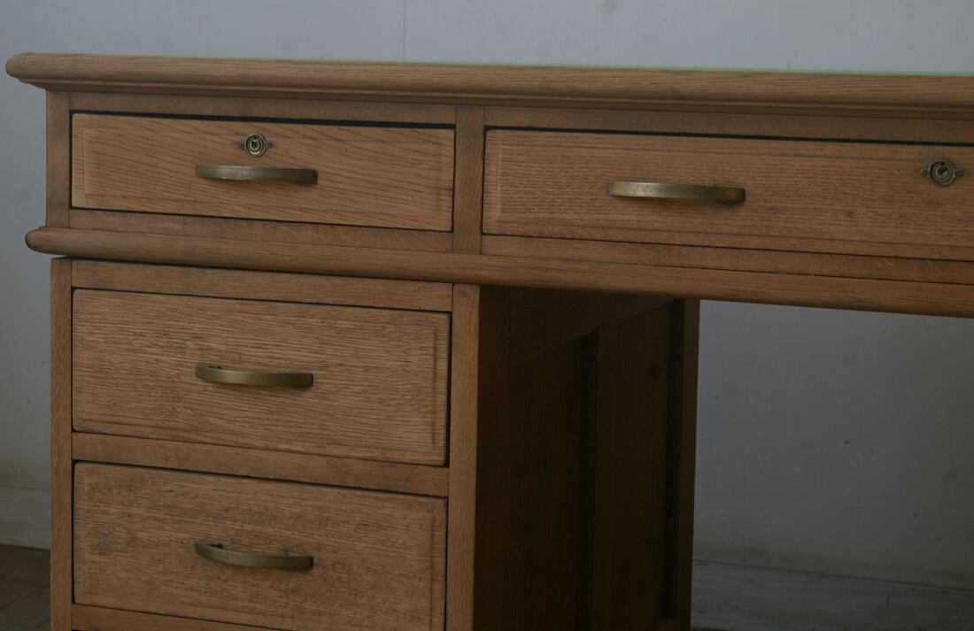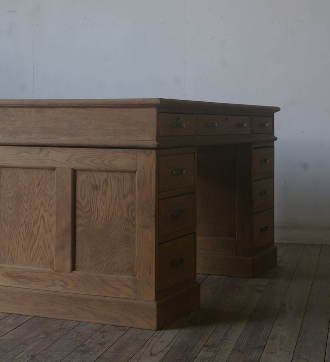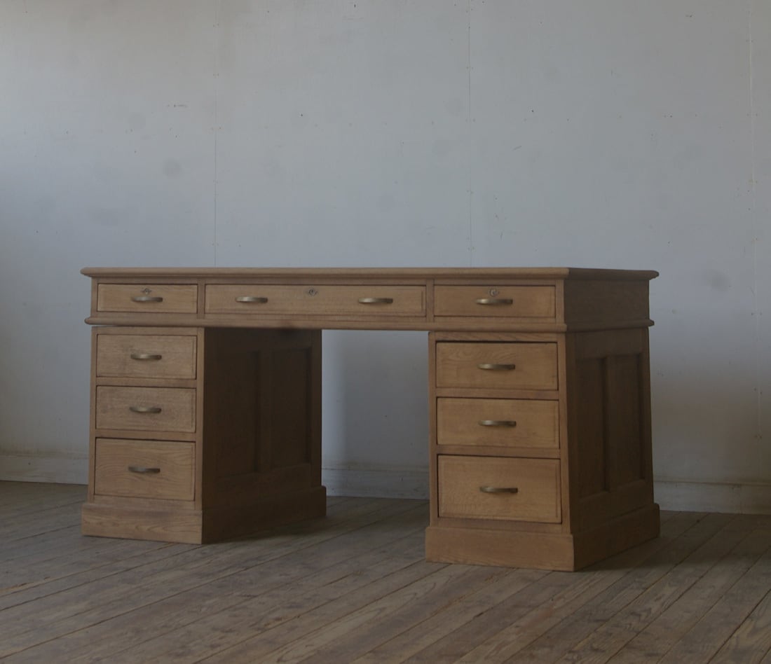 分解式引き出し9杯古い楢材両袖机 YZ2468