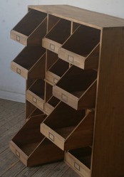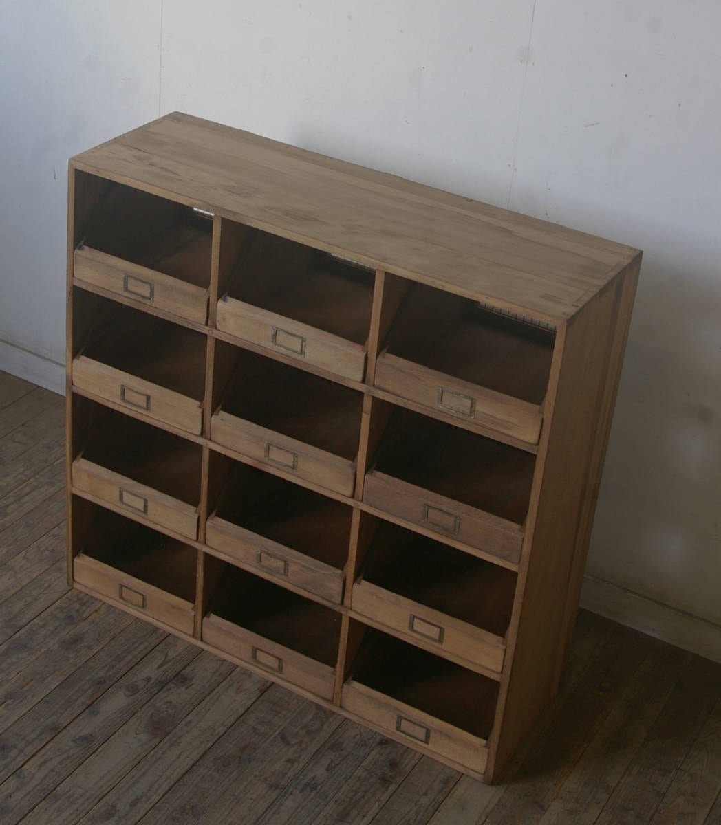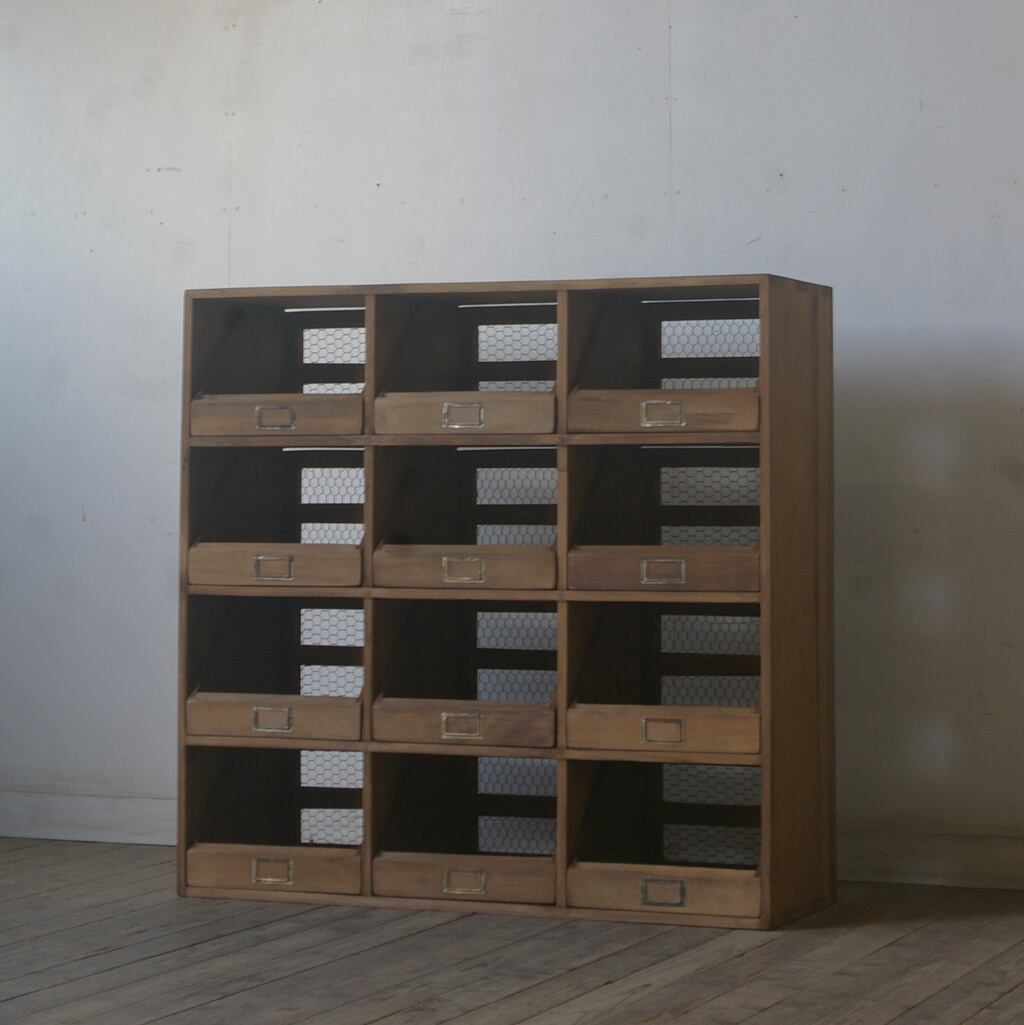 珍しいアンティーク引き出し12杯郵便局の仕分け棚です。