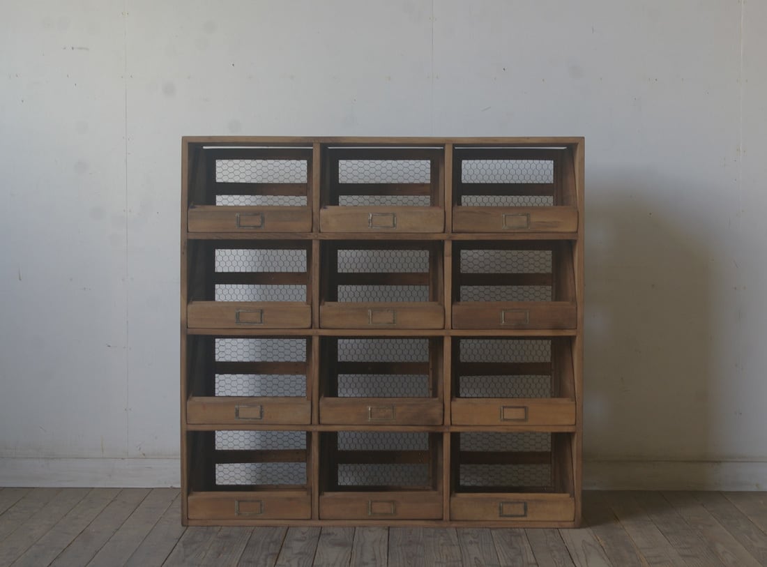 希少◆引き出し12杯古い郵便局の仕分け棚 YZ2467