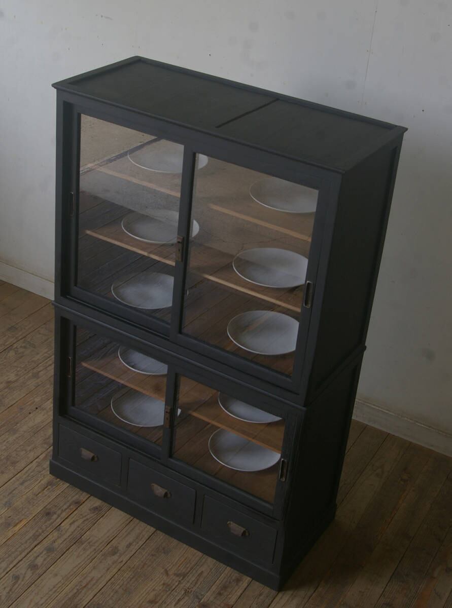 引き出し3杯◆古い重ねガラス戸棚 YZ2469