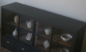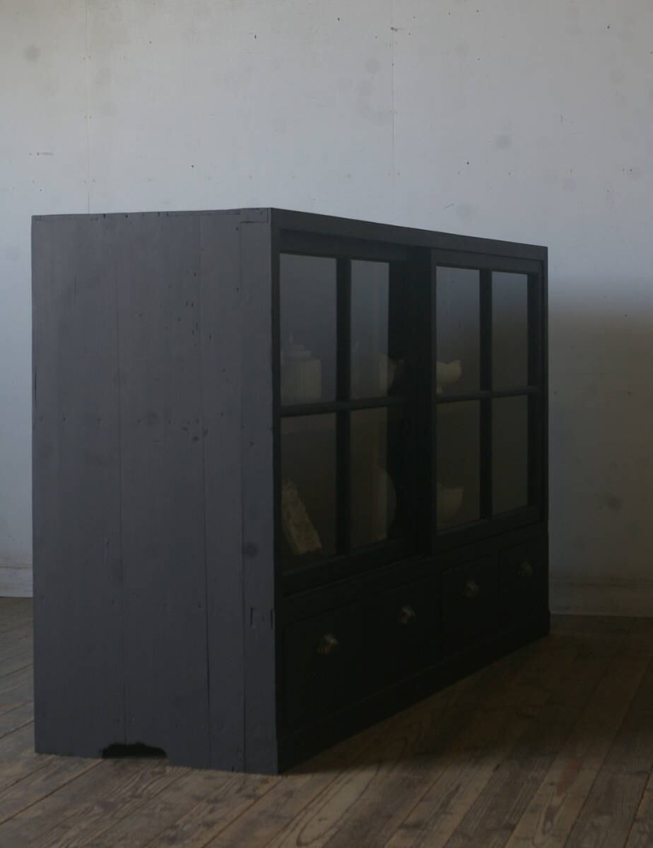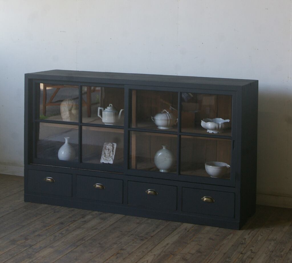 引き出し4杯古い横長十字ガラス戸棚 YZ2467