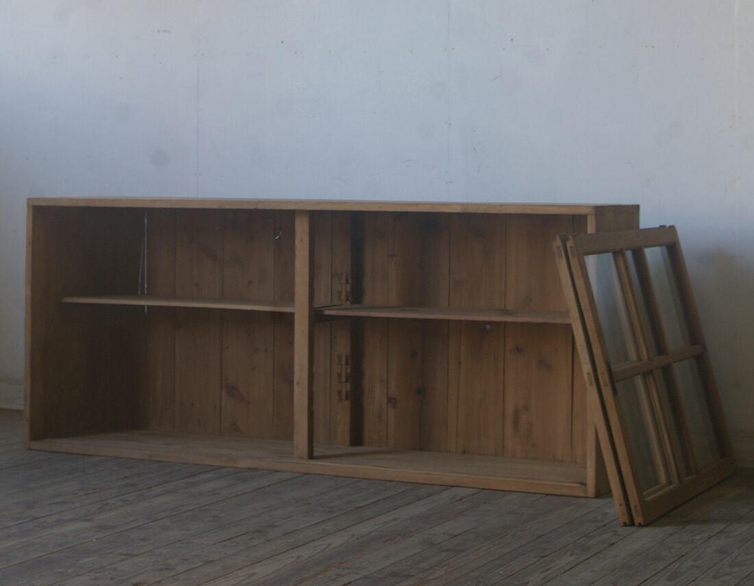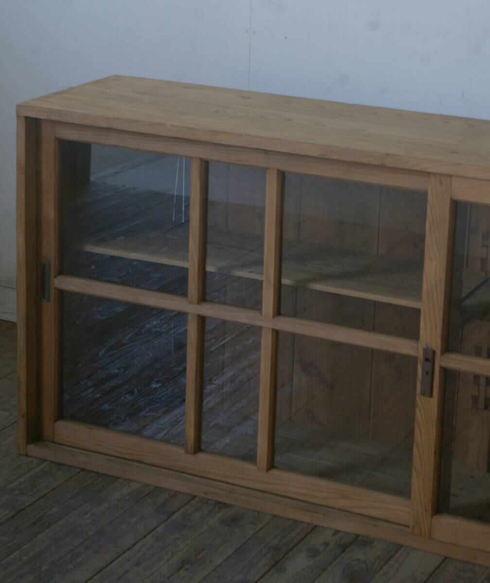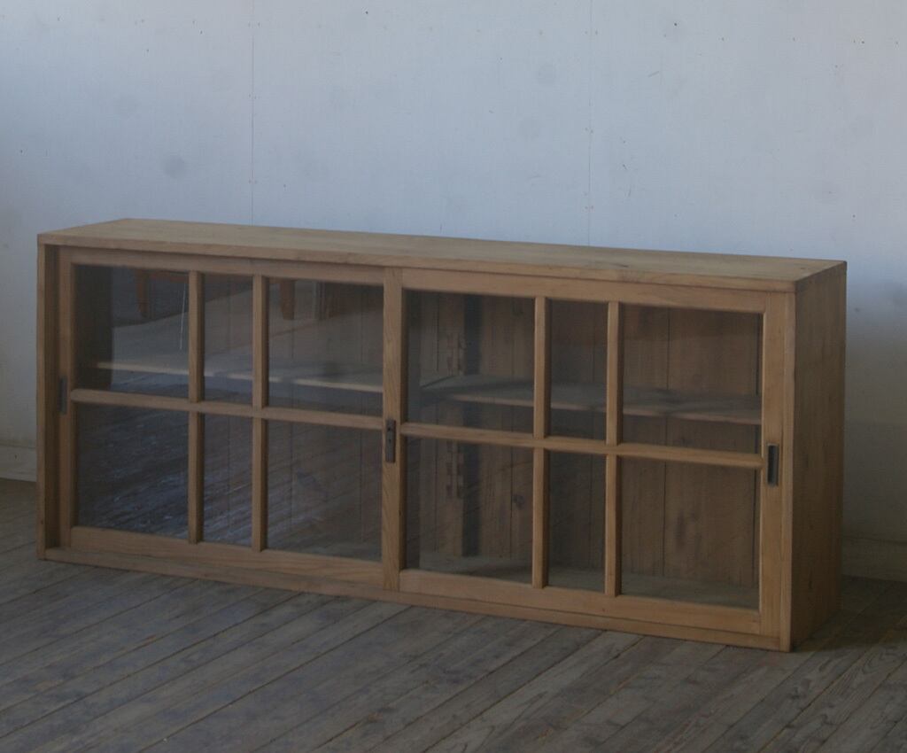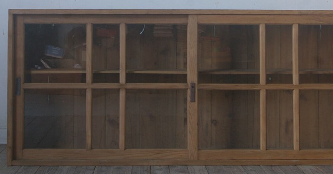 古い横長格子ガラス戸棚 YZ2493