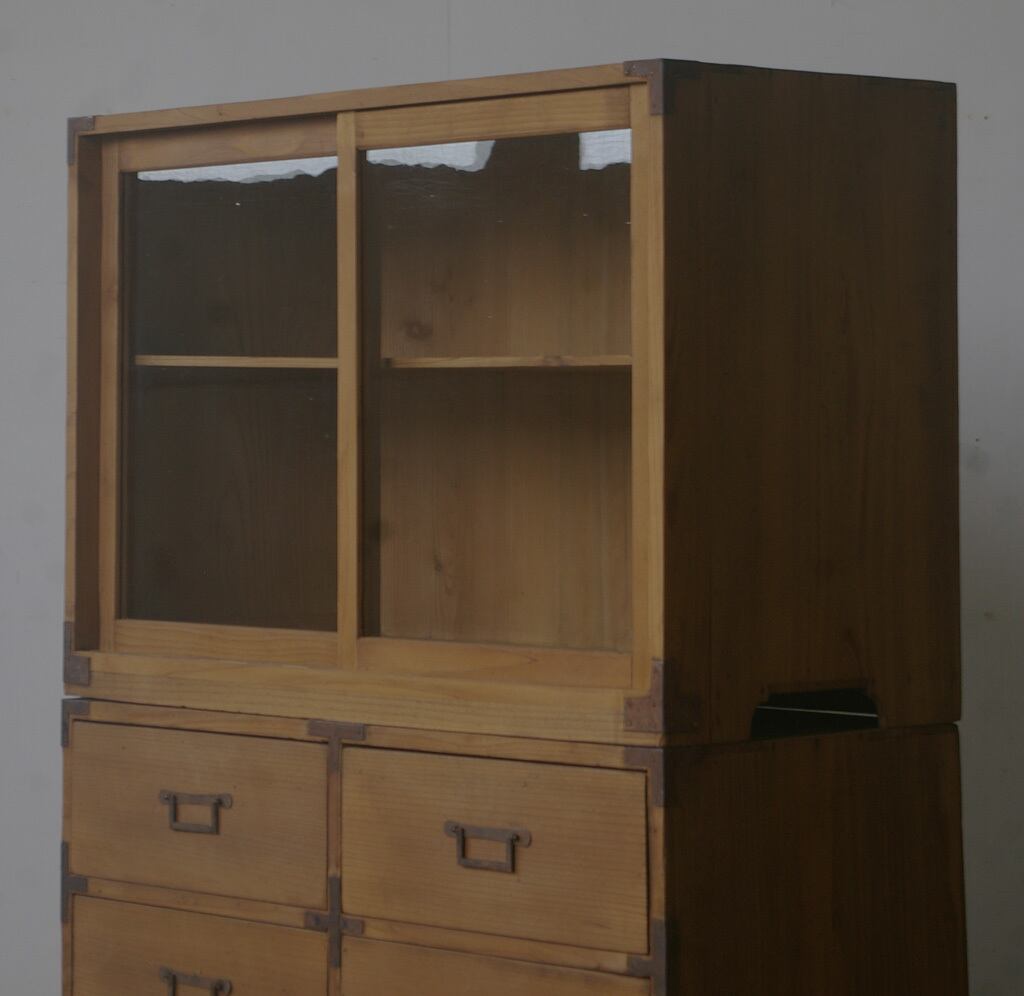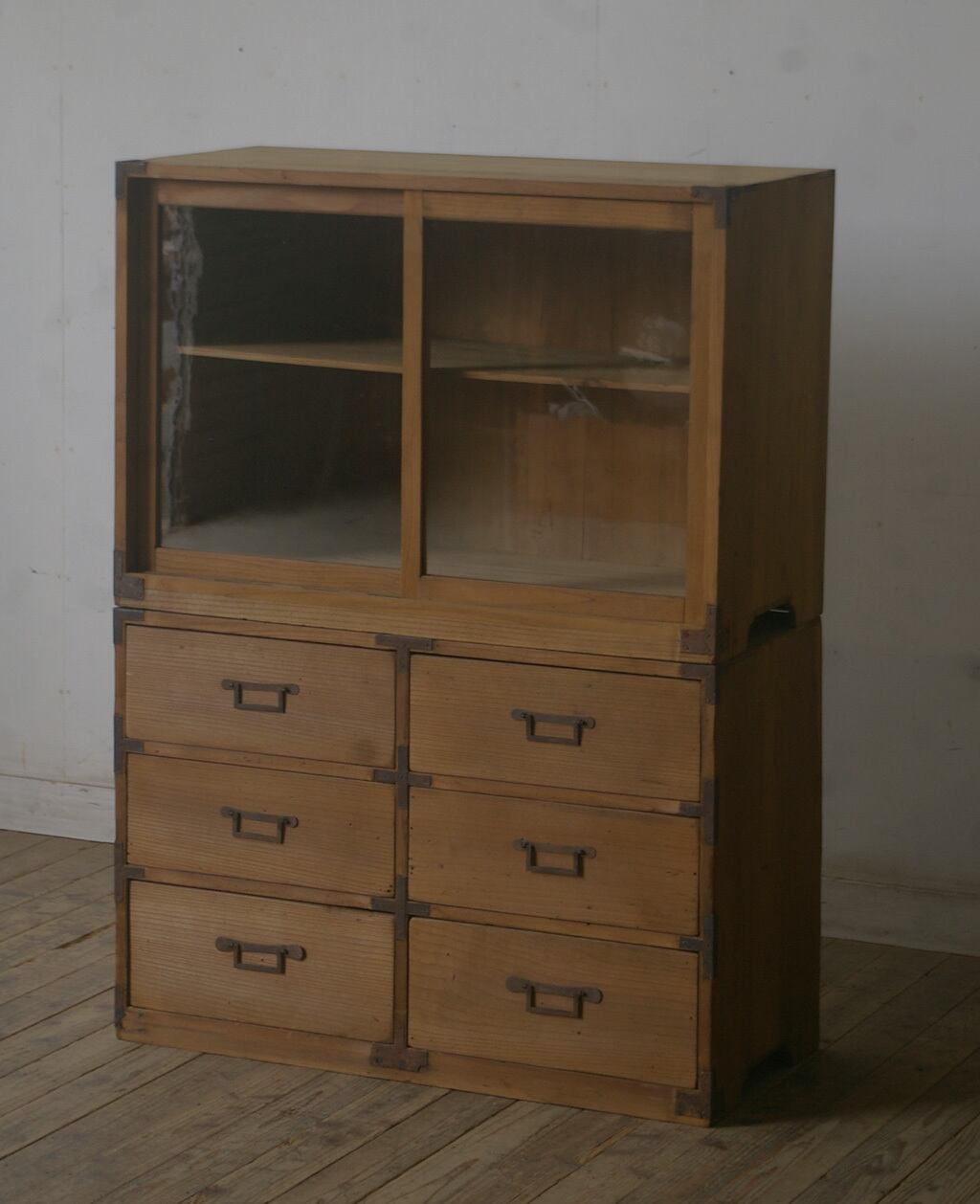 引き出し6杯 古い重ねガラス戸棚 YZ2495