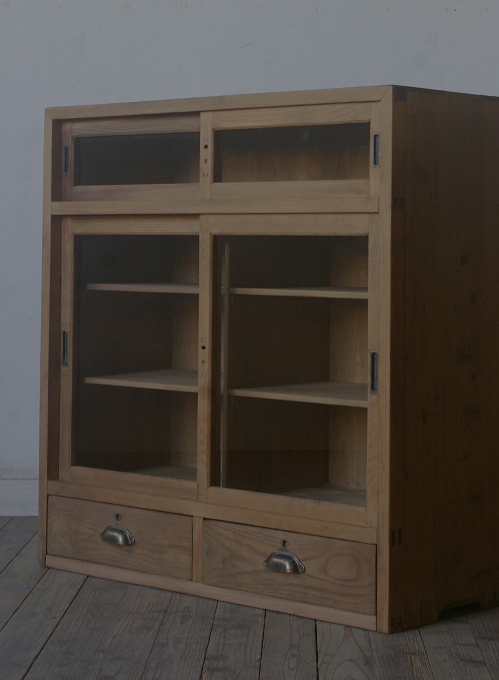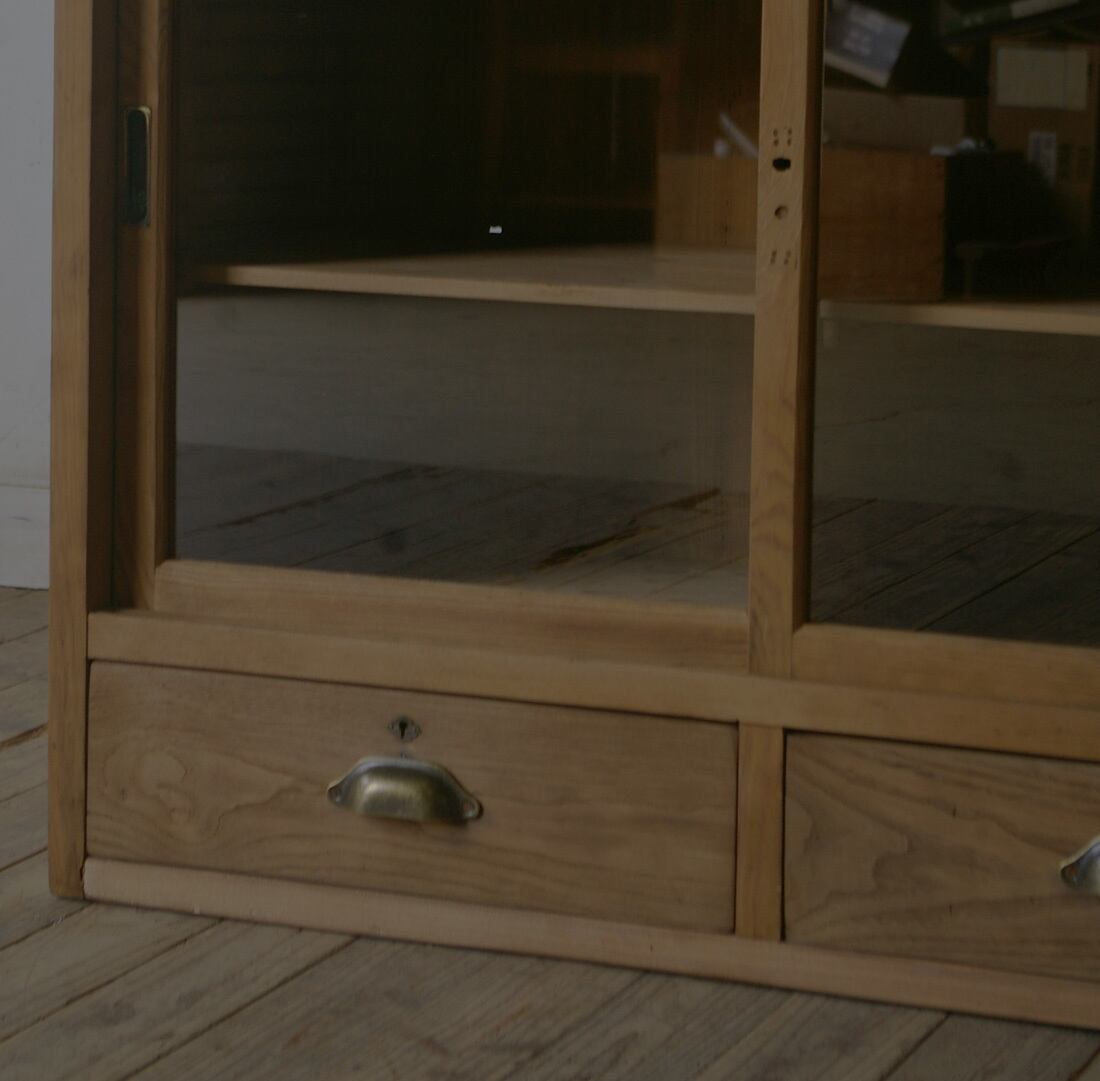 引き出し2杯古い4枚ガラス戸棚 YZ2507