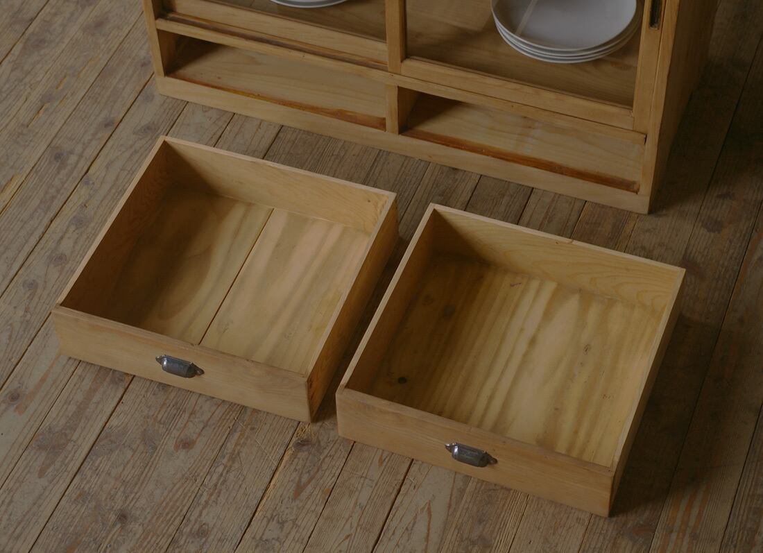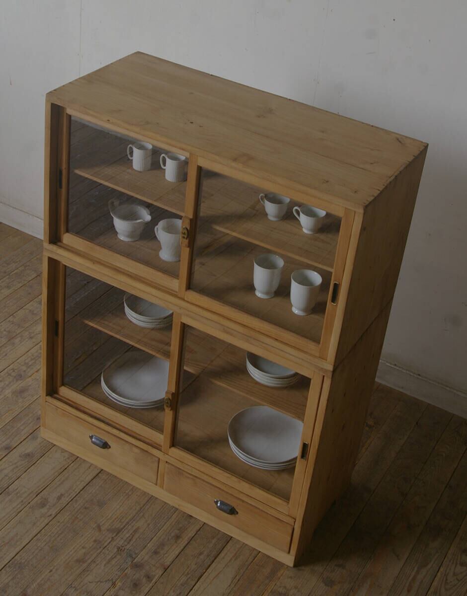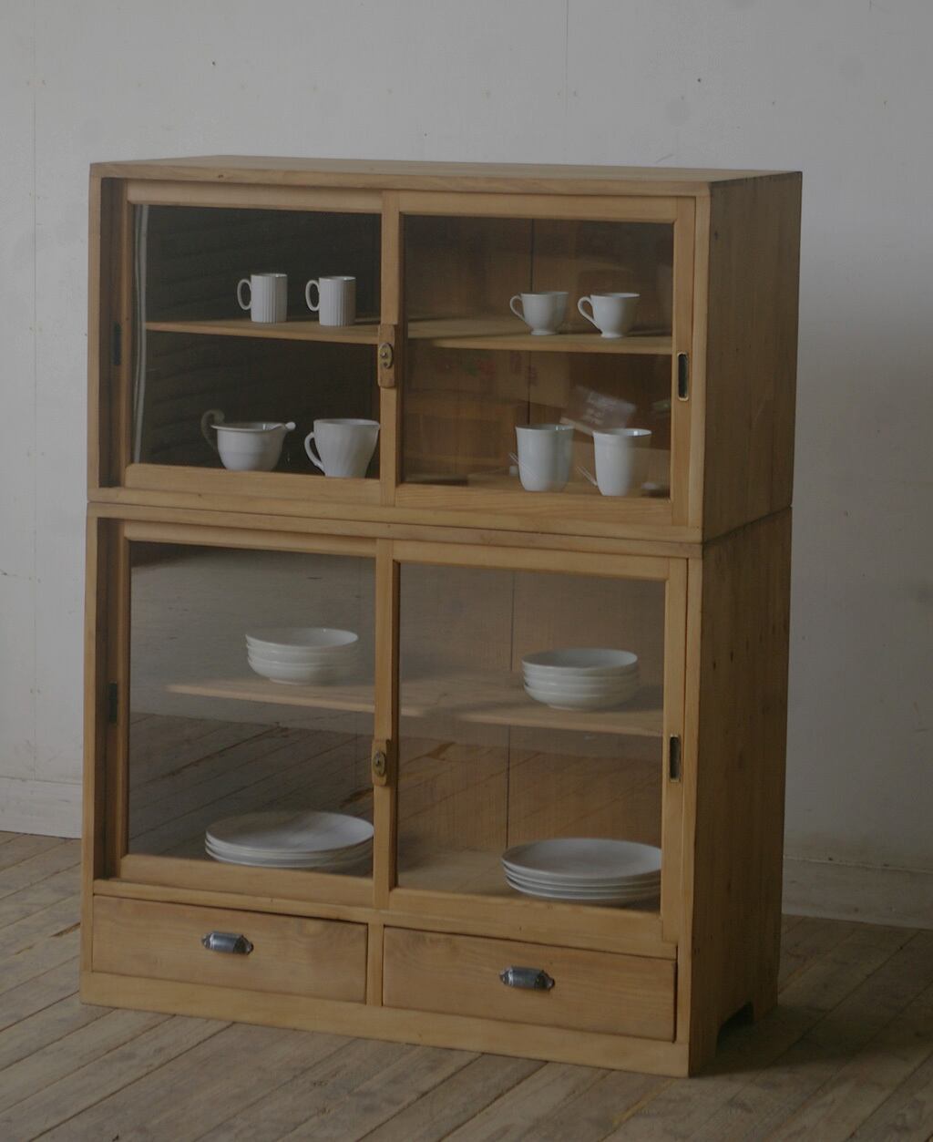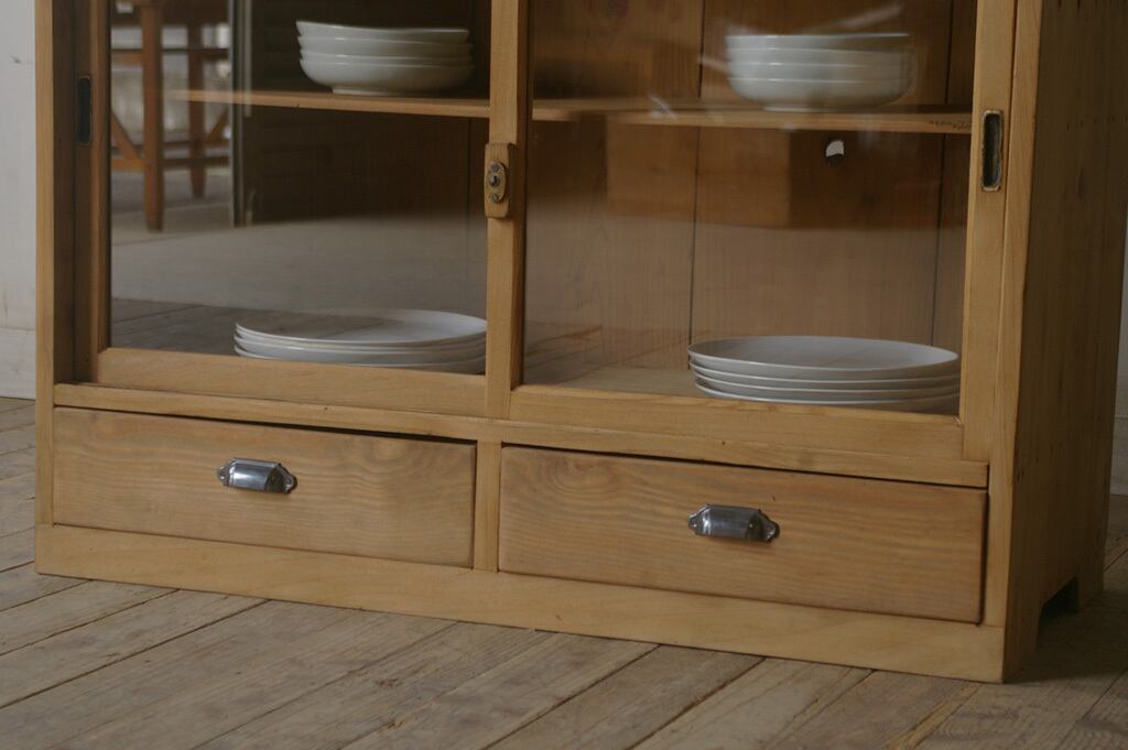 引き出し2杯古い重ねガラス戸棚 YZ2531